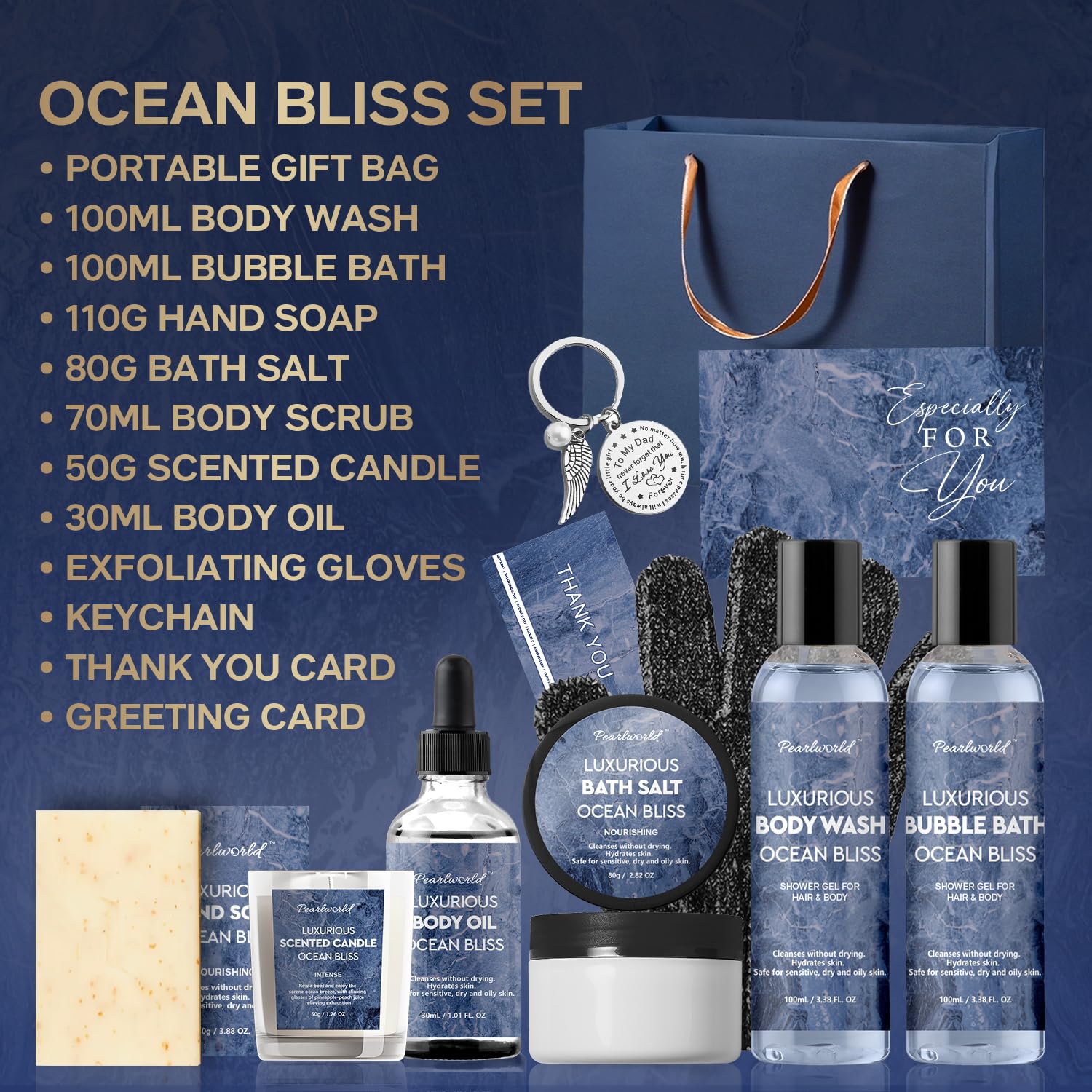 PEARLWORLD 12Pcs Men’s Birthday Gift Ideas Ocean-Scented Bath Spa Set – Skin Care Gift Kit for Him, Ideal Men Gifts for Christmas, Self-Care