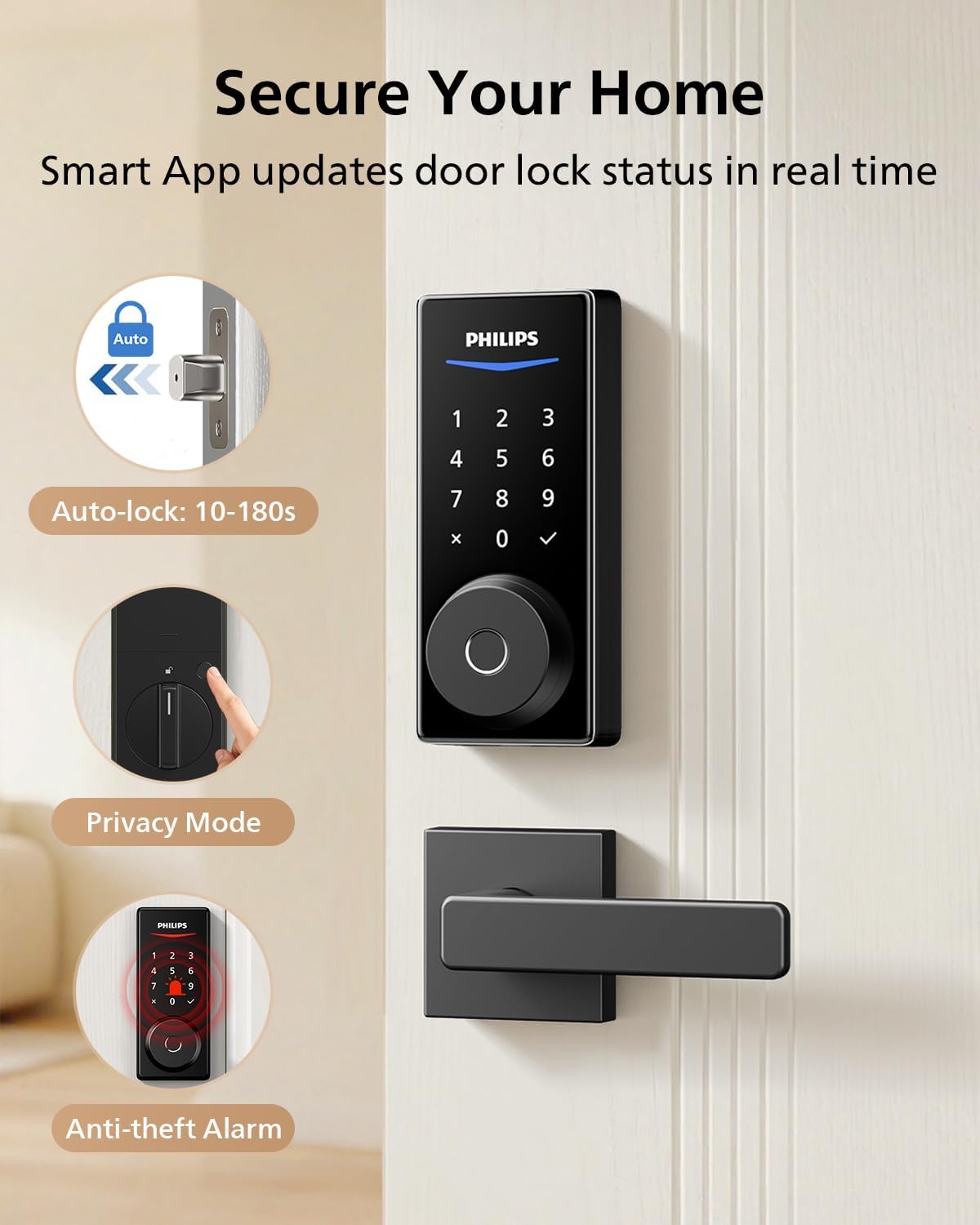 ๐๐ฆ๐๐ซ๐ญ ๐๐จ๐ฆ๐ ๐ฐ๐ข๐ญ๐ก ๐๐๐ญ๐ญ๐๐ซ: The Philips smart door lock builts with Matter technology onboard, compatible with Alexa, Google Home, Apple Home, SmartThings and Philips Home Access App, allowing seamless integration into various smart home systems for whole-home automation.
