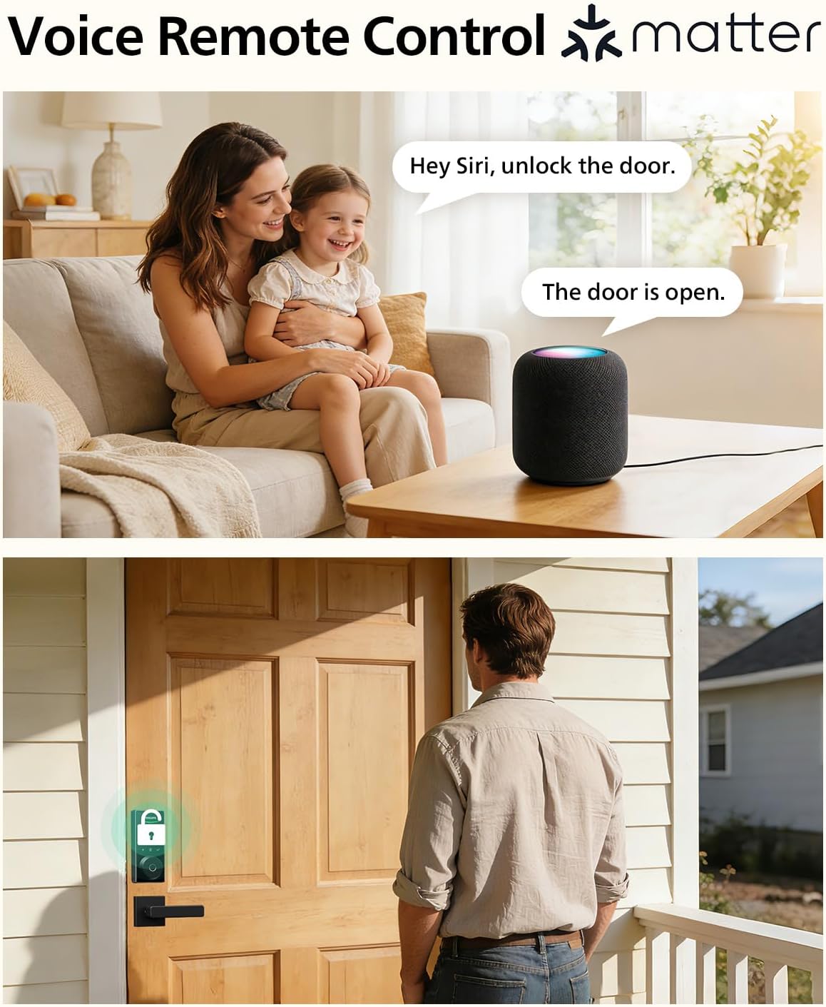 ๐๐ง๐-๐ญ๐๐ฉ ๐๐จ๐๐ค ๐๐ง๐ ๐๐ง๐ฅ๐จ๐๐ค ๐ฏ๐ข๐ ๐๐๐ญ๐ญ๐๐ซ: You can pair the touchscreen deadbolt lock with your preferred matter-compatible App (Apple Home,Alexa, Google Home) to remotely lock or unlock the door with a single tap or voice command, making your life more convenient and secure.