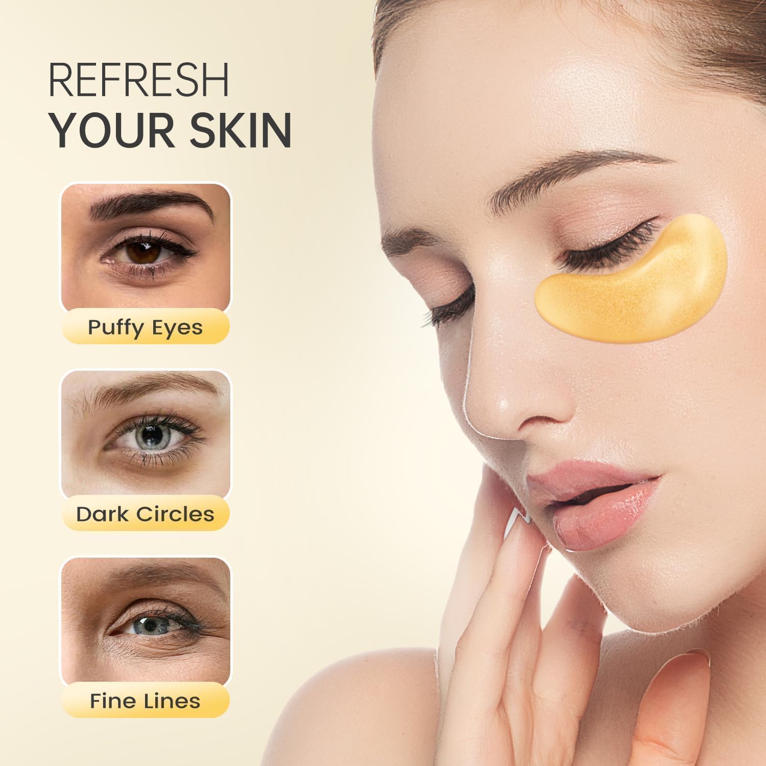 [24K Gold Infused Brightening Treatment] Crafted with genuine 24K gold particles and vitamin C complex, our eye masks deliver instant radiance to tired under-eye areas. The gold-infused hydrogel conforms perfectly to eye contours, activating collagen production while reducing pigmentation. Ideal for daily use before makeup or post-long flights, see visible reduction in dark circles within 3 uses. Dermatologist-tested formula safe for sensitive skin. (Contains 60pcs/month supply)