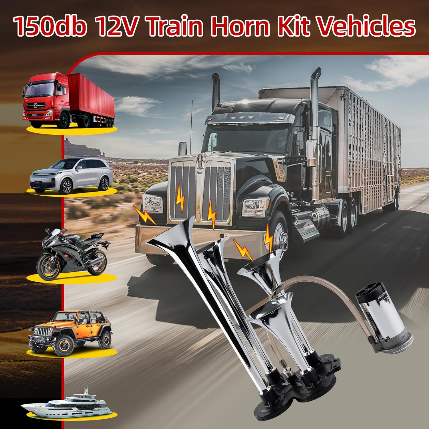 Compatible For :This truck train horn suitable for most 12V DC powered vehicle, Like trucks, SUVs, motorcycles, yachts, boats, off-road vehicles, buses, etc. It also comes with a universal stand to make installation easier.