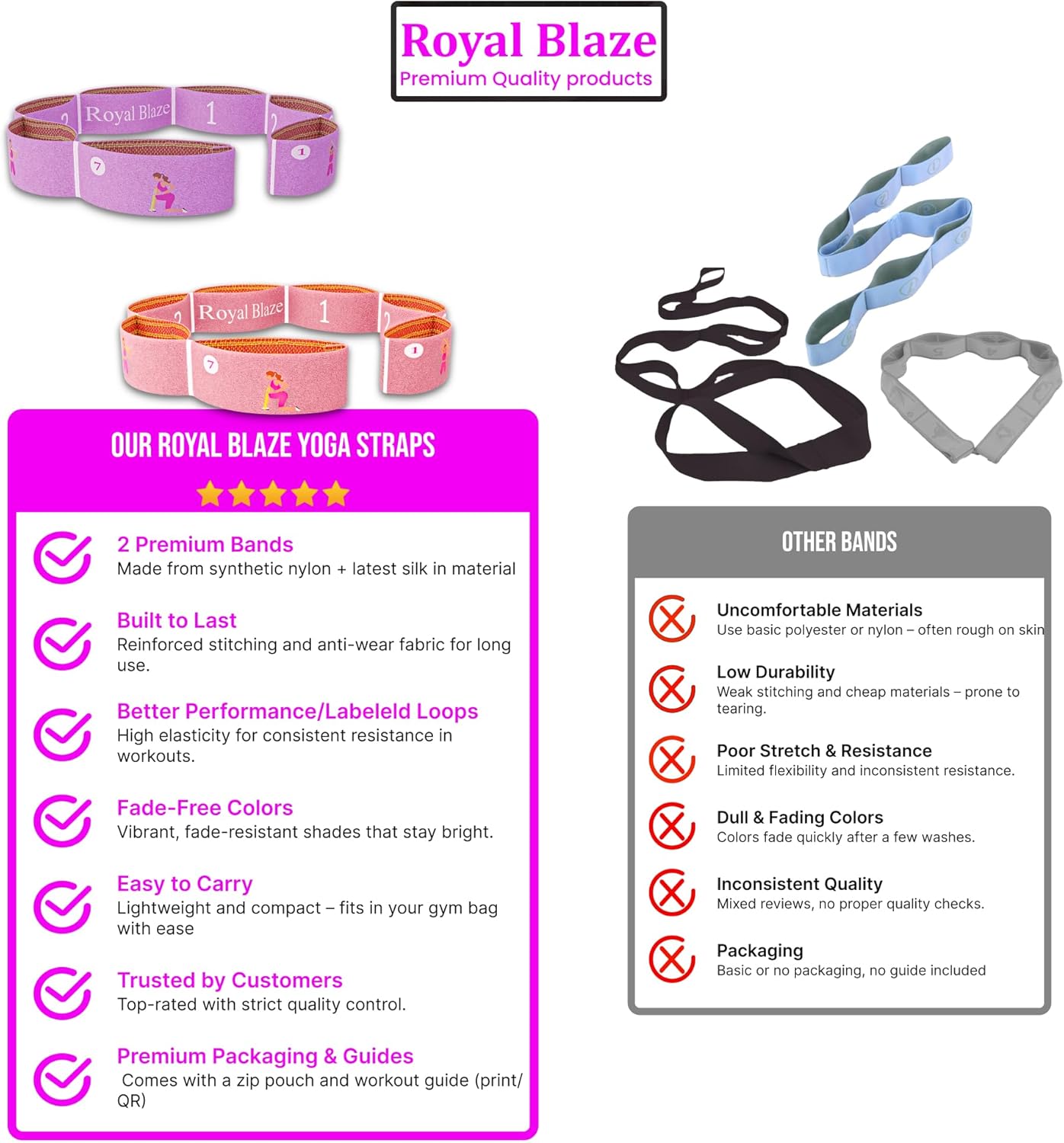 Durable and Super Elastic: Our stretching strap with loops features a wide and thick design reinforced with strong stitching and soft padding that provides not only superior durability but also outstanding elasticity!