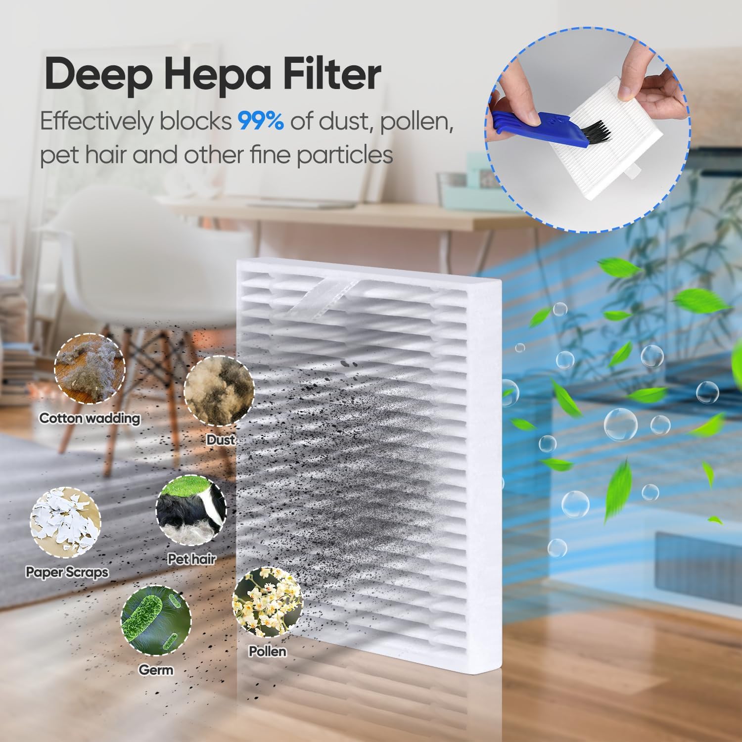 【OUTSTANDING PERFORMANCE】: Multi-layer filtration dust bag captures 99% of pollutants and automatically seals without leaking dust . HEPA filter traps tiny particles of dust, pet hair and odors. Plus with our included cleaning brush tool makes it easy to solve the problem of your automatic vacuum robot cleaner getting stuck in the hairs. Keep your robot vacuum and mop running efficiently with these replacement parts