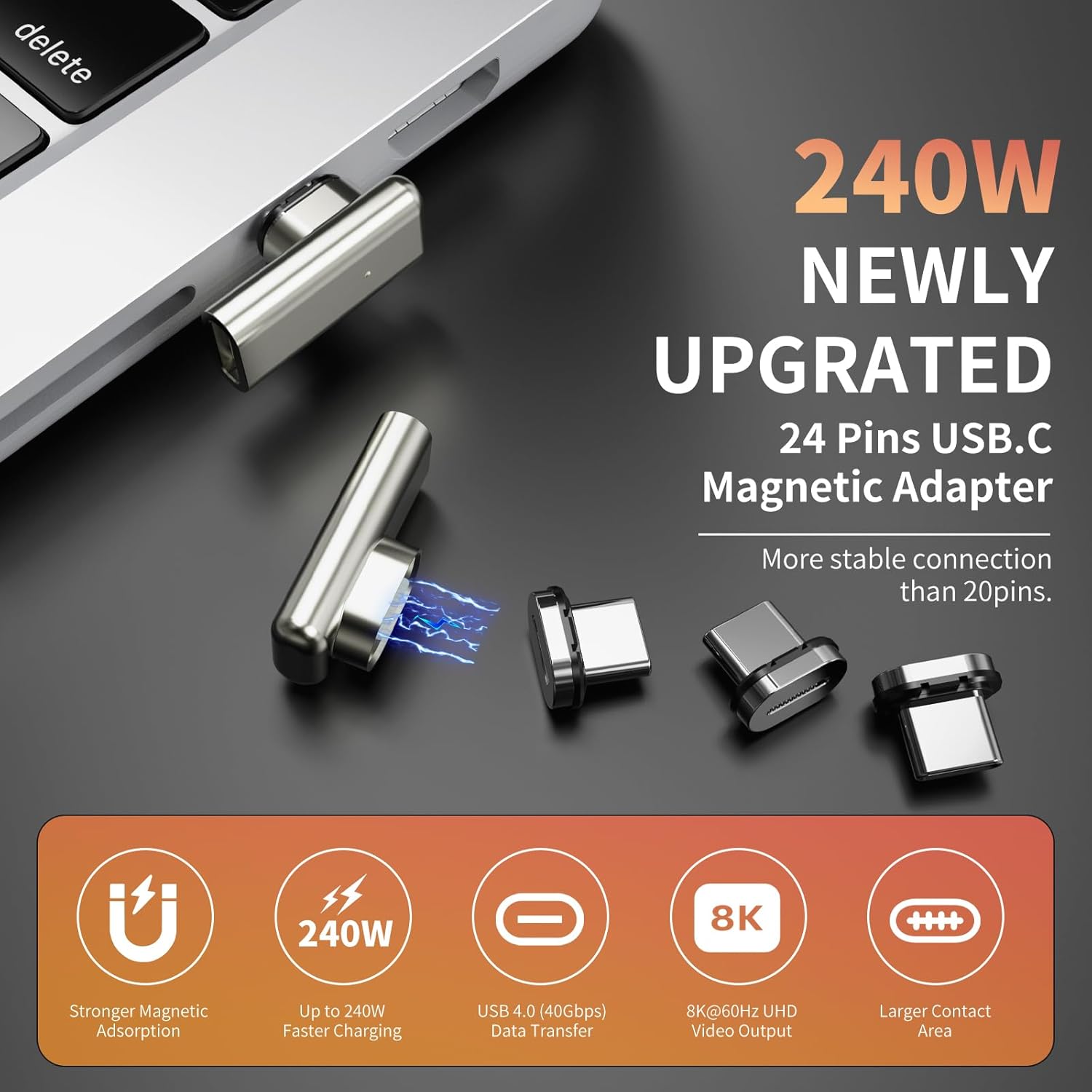 STRONG MAGNETIC CONNECTION: This USB C magnetic adapter features an advanced design that protects your notebook port from wear and tear caused by frequent plugging and unplugging. With 24 gold-plated pins, this magnetic USB C adapter provides a larger contact surface, ensuring a more reliable connection compared to standard 11-pin adapters. It’s a smart choice for a secure and stable magnetic connection