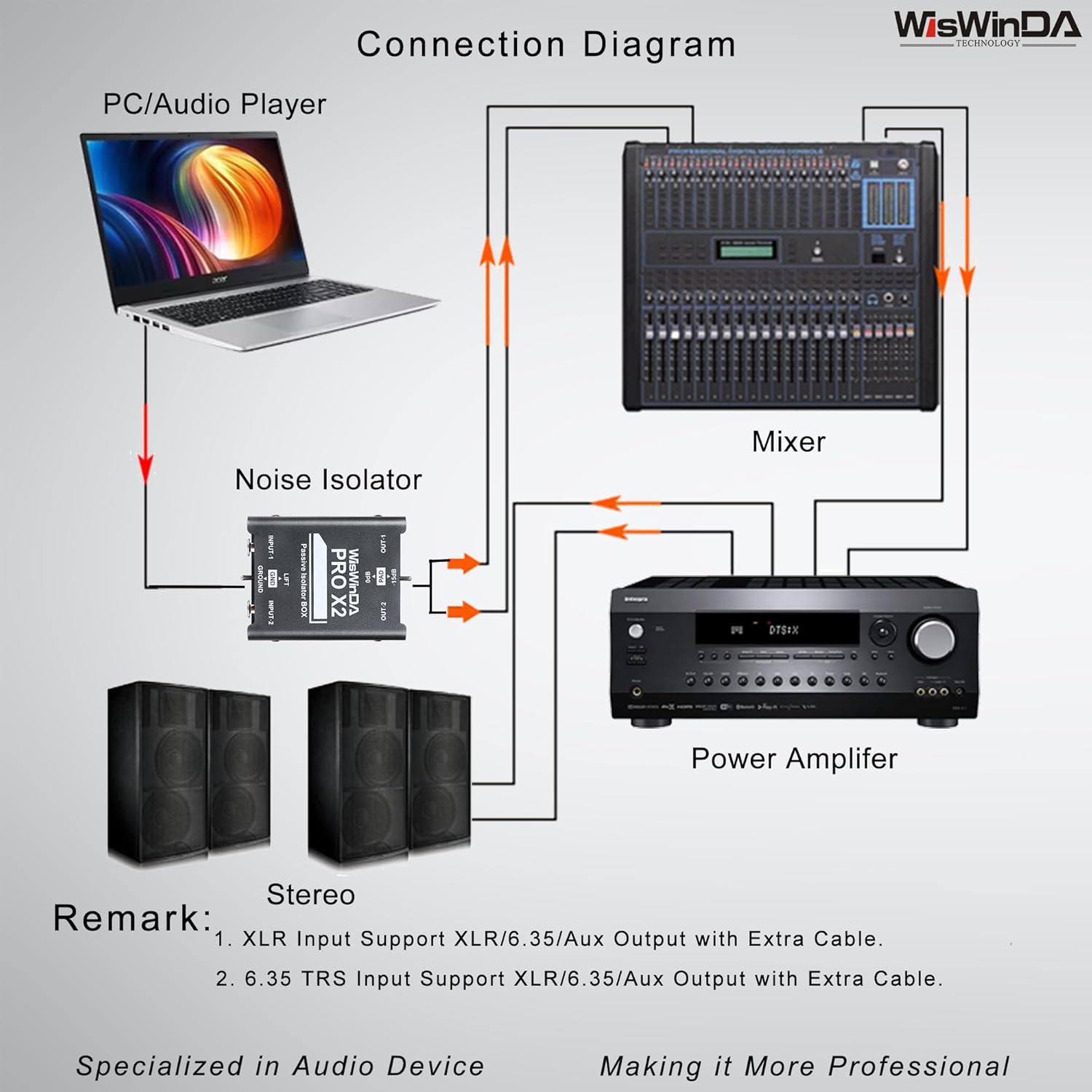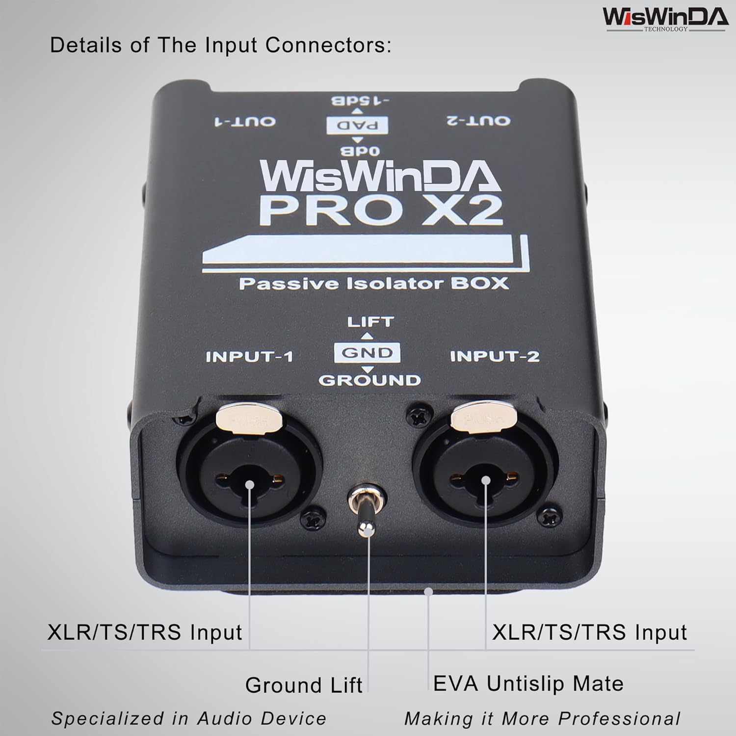 1. WisWinDa Pro X2 2Channels XLR/TS/TRS Passive Hum Eliminator Box for Audio Equipments Ground Loop Isolator Noise Filter for Different Audio Systems Using