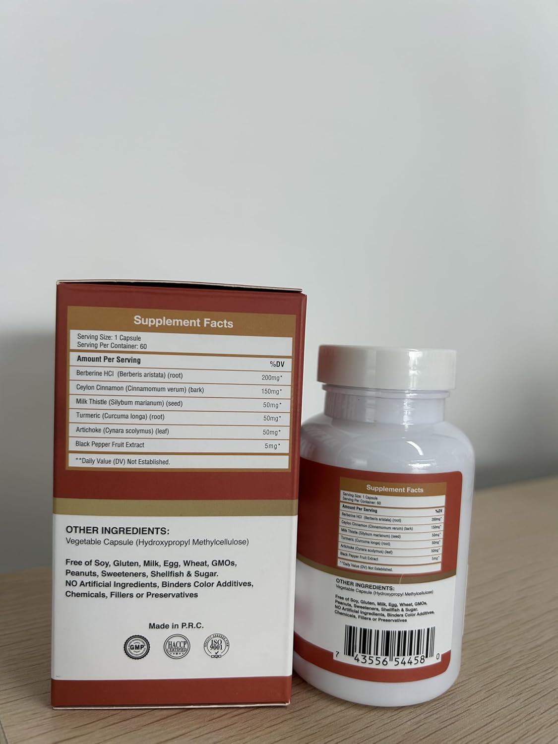 6-IN-1 EXTRA STRENGTH: Premium Berberine supplement includes Berberine HCl, Ceylon Cinnamon, Milk Thistle, Turmeric, Artichoke, Black Pepper, a powerful combination that works synergistically to provide maximum benefits and better absorption