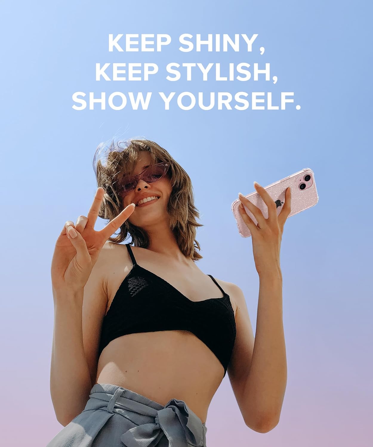 [Long-lasting Glitter & Non-Yellowing] This 15 glitter case is made of hard PC backplate and soft TPU frame, which is durable and will not yellow over time. The embedded crystal glitter will never peel off and stay shiny, giving your case a long-lasting clear glitter.