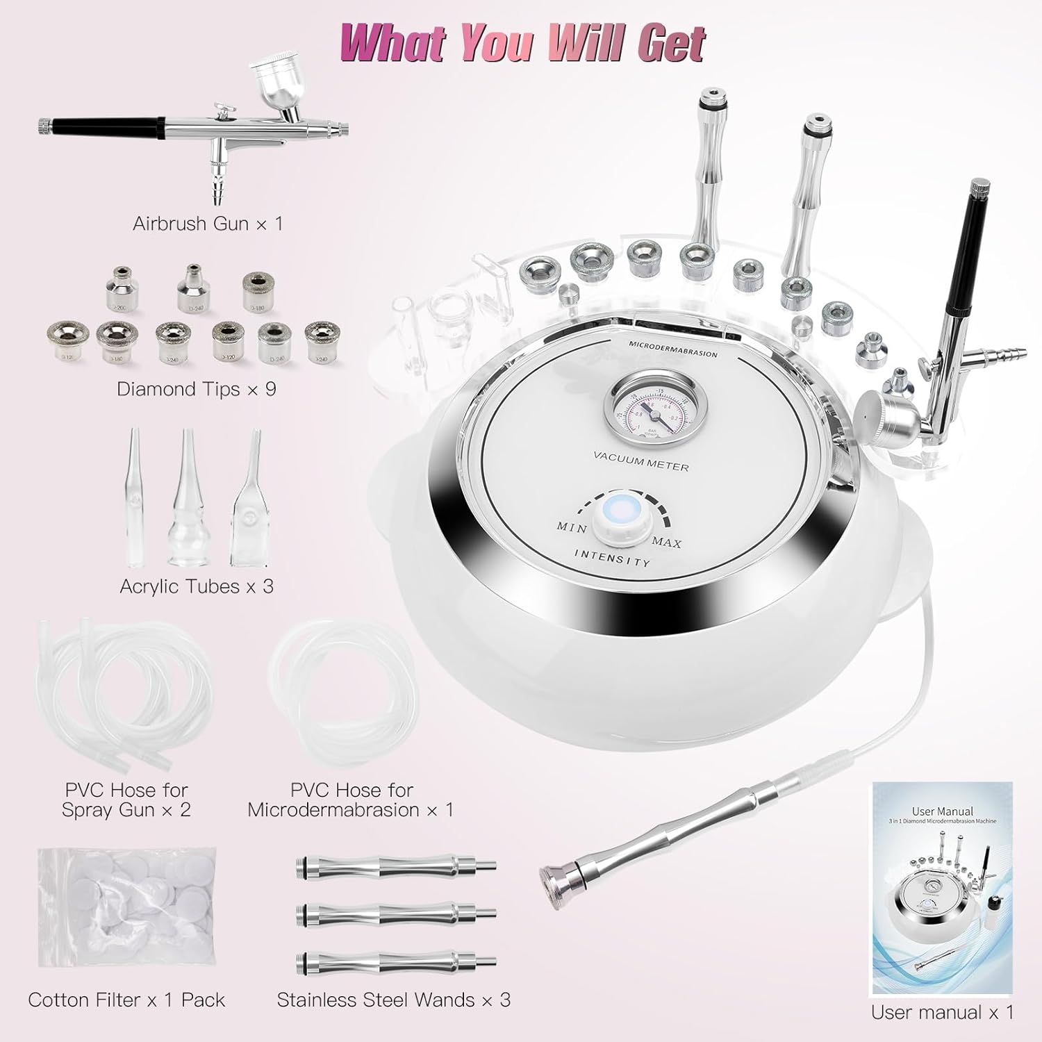 ๐ Professional 3 in 1 Diamond Microdermabrasion Machine: Your all-in-one home spa solution for exfoliation, blackhead removal, and hydration
