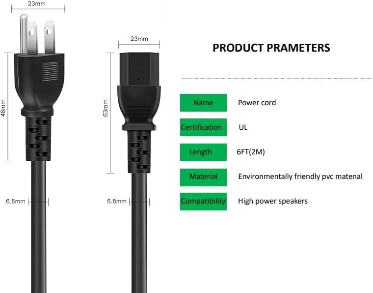 【Power specs】3 Prong AC power cord cable, 18AWG, 10A.