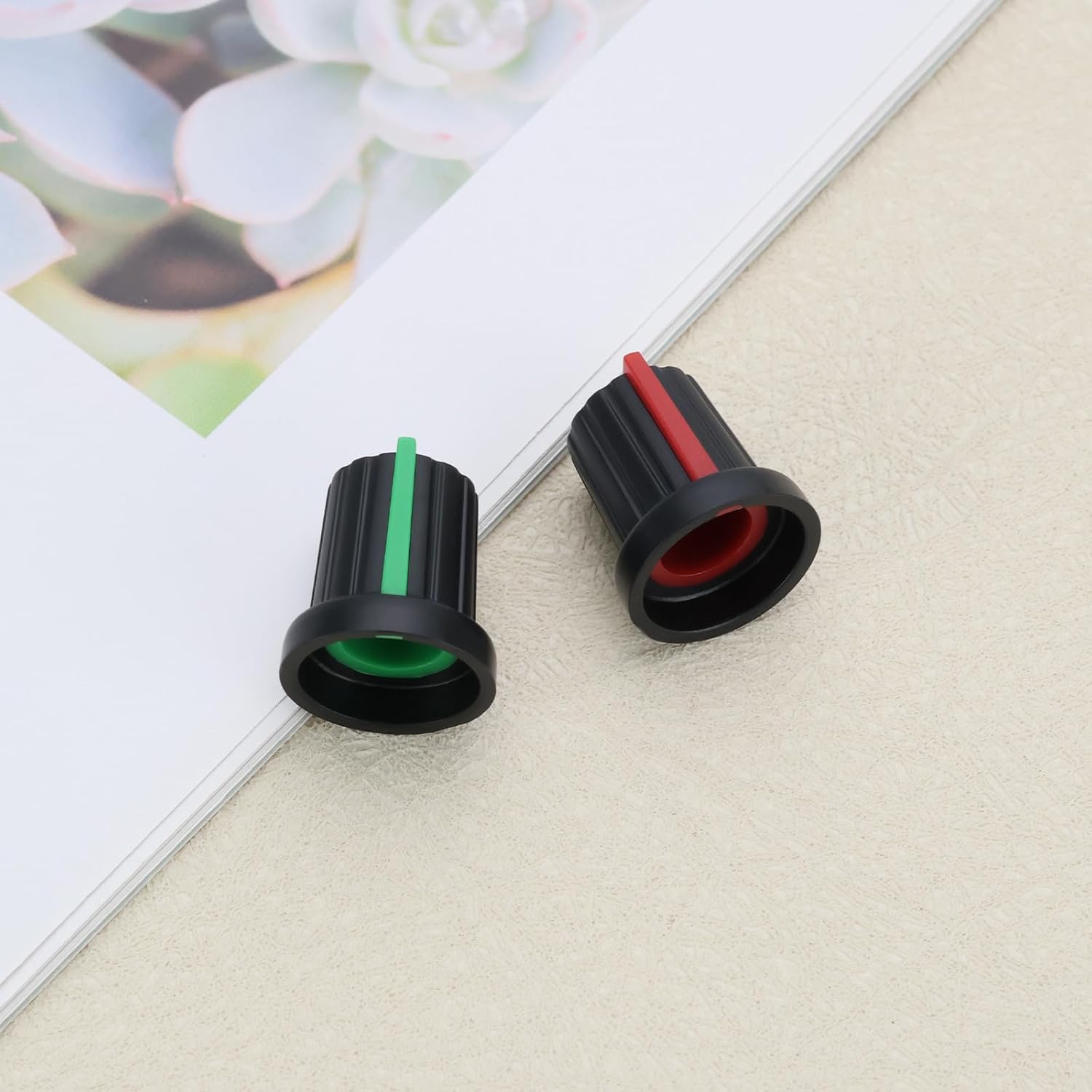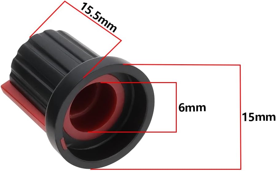Dimensions: Each knob measures 15mm in diameter, 15.5mm in height, with an inner hole diameter of 6mm, ensuring a snug and secure fit on potentiometers and rotary switches.
