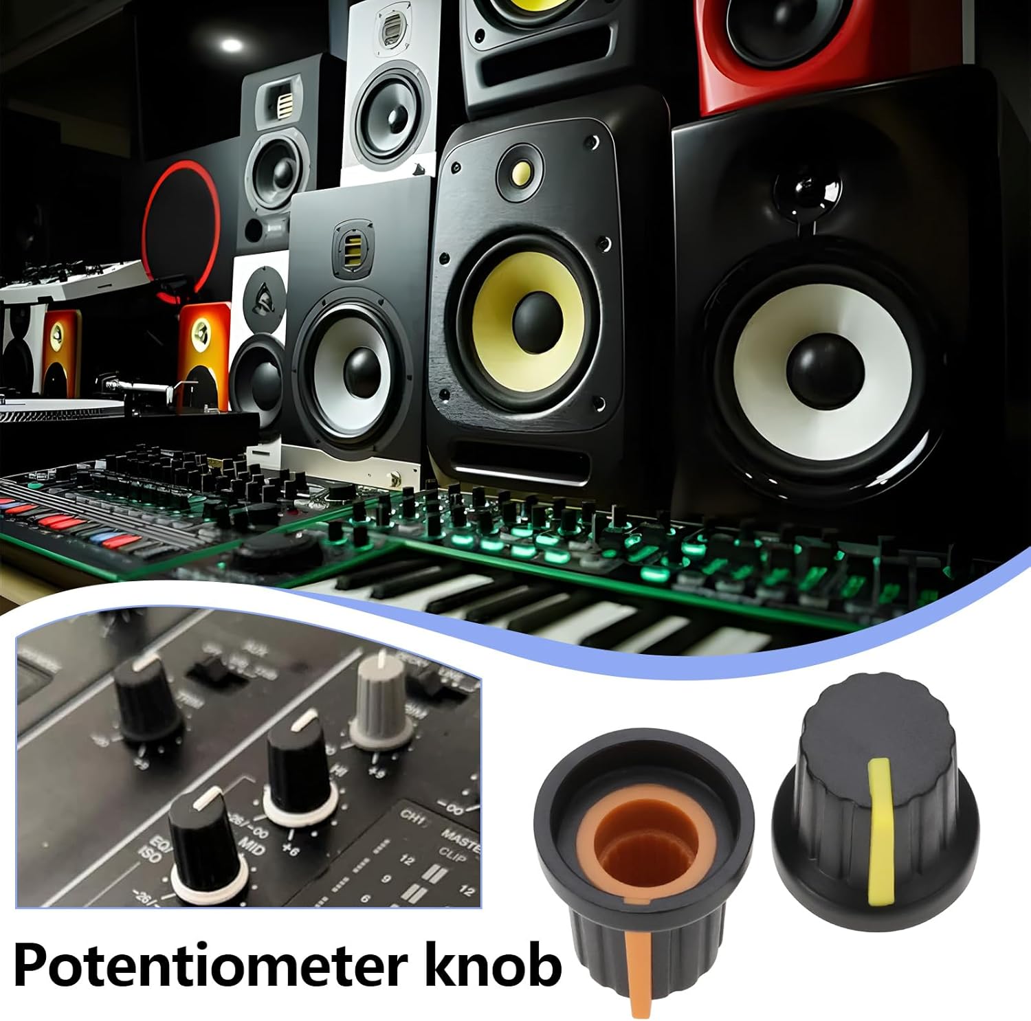 Versatile Compatibility: Ideal for various applications such as volume control knobs, audio knobs, guitar knobs, electric guitar knobs, and encoder code switch knobs, making them perfect for sound equipment, car radios, amplifiers, mixers, synthesizers, and more.
