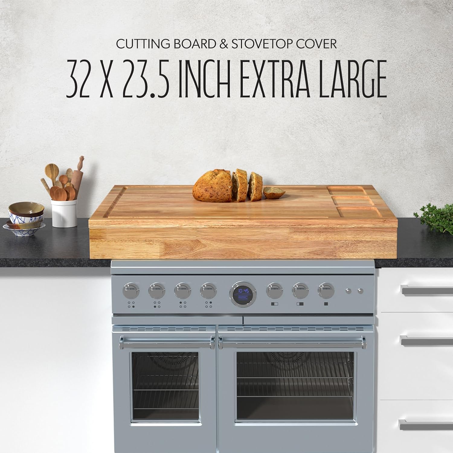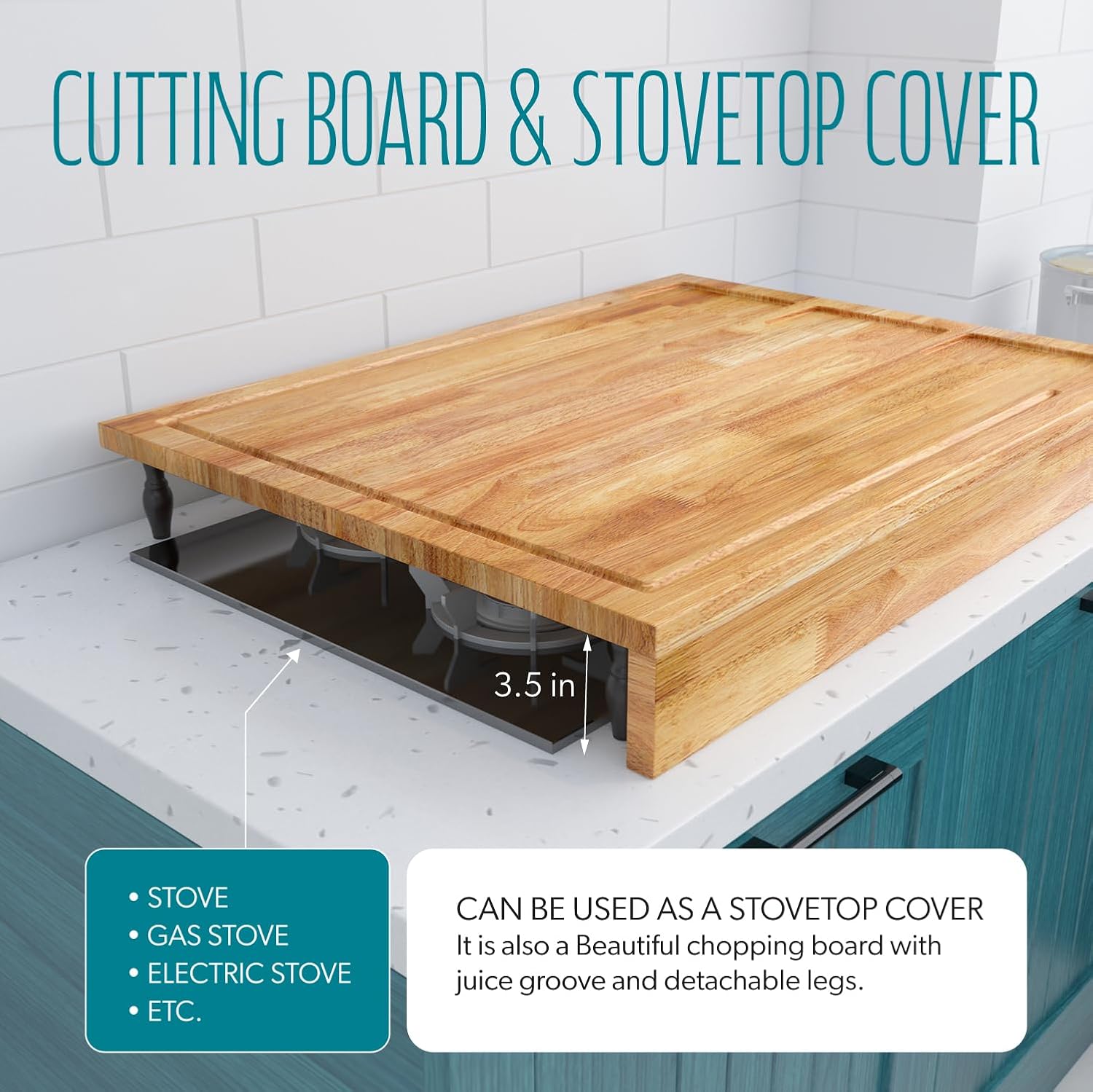 32×23.5 inches Extra Large Solid Wooden Cutting Board and Stovetop Cover, 2 in 1 Stove Top Cover Chopping Board with Detachable Legs and Juice Groove