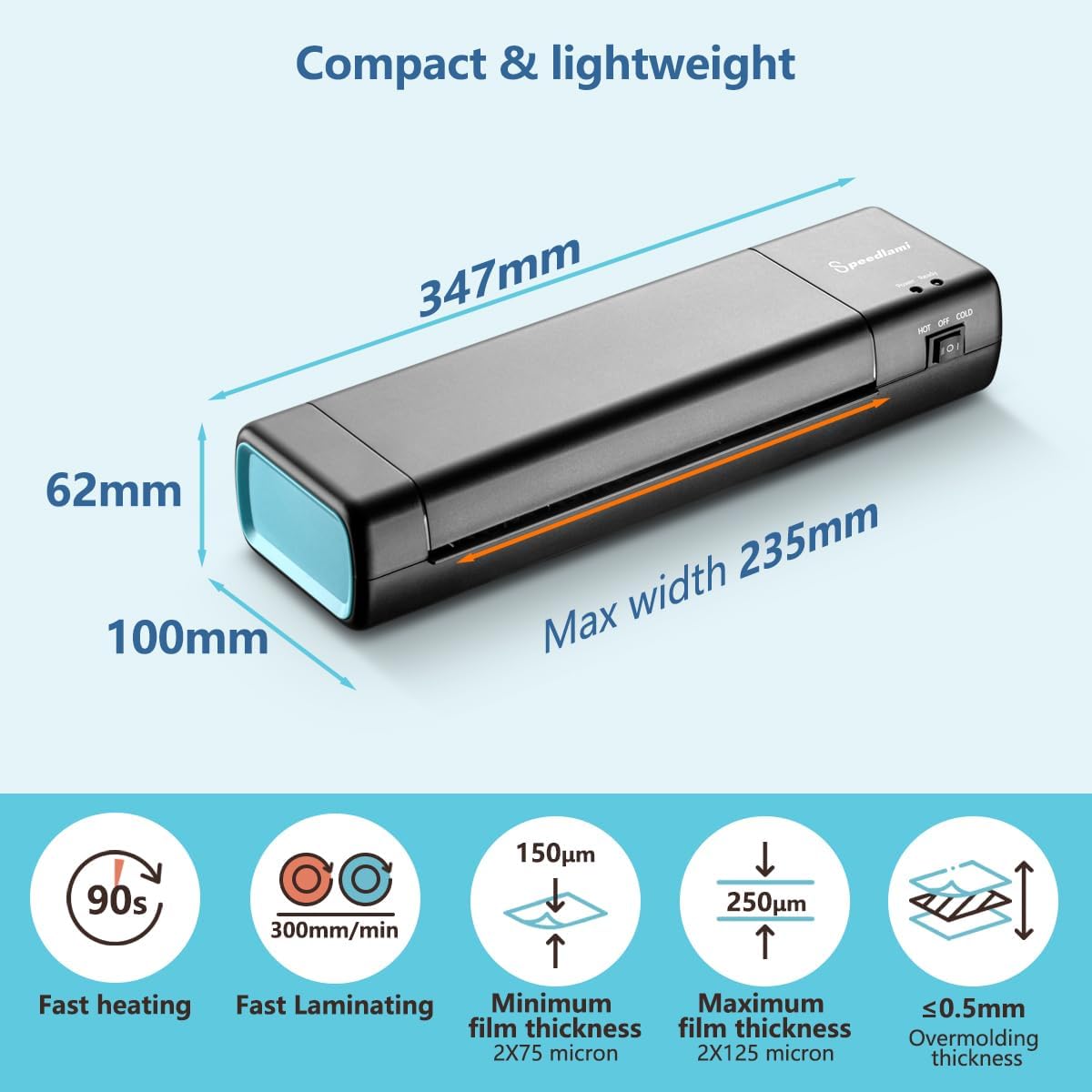 Portable, Suitable for Home/Office/School: Simple operation, compact size, and ultra-light laminator become ideal for individuals, teachers, business white-collar workers, often used to save important documents and precious photos (training materials, legal documents, posters, photos, menus, postcards, bookmarks, tags, children’s artwork, etc.)