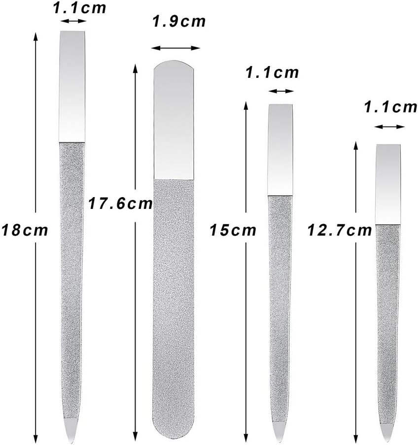 4 Pcs Metal Nail File Diamond Nail Files Stainless Steel Nail File Kit Double Side Fingernail Toenail Files for Salon Home Travel Use(5.9Inch)