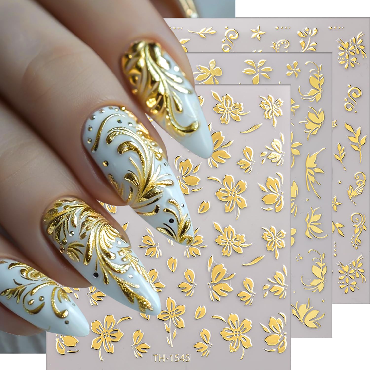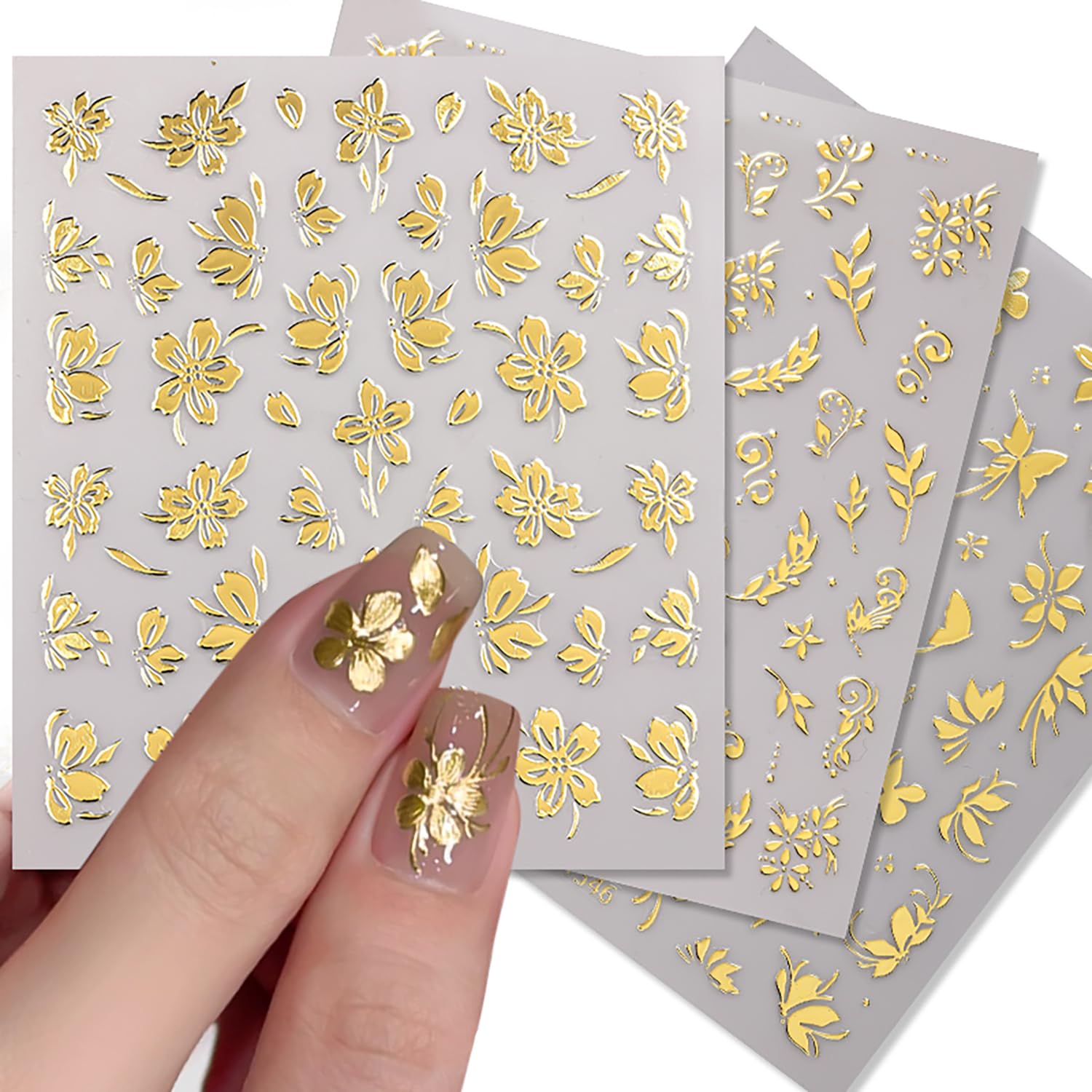【Easy to Use】3D nail art stickers are self-adhesive; so just choose you liked pattern, just use tweezers peel off to stick it gently your nail, applying over a base coat or nail polish will be better.