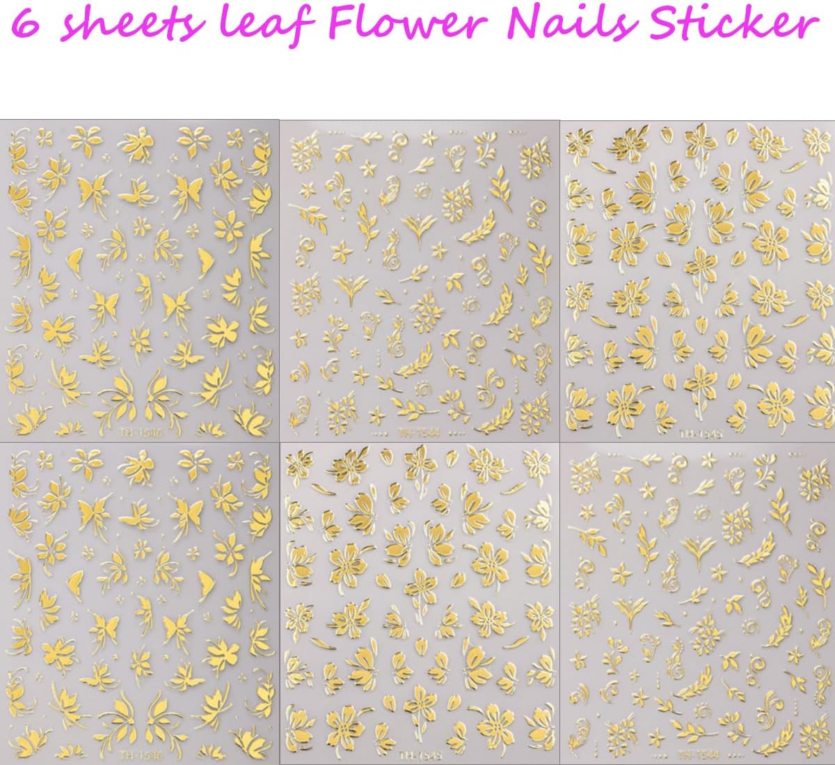 Quantity: 6 sheets metallic flower nail art decals