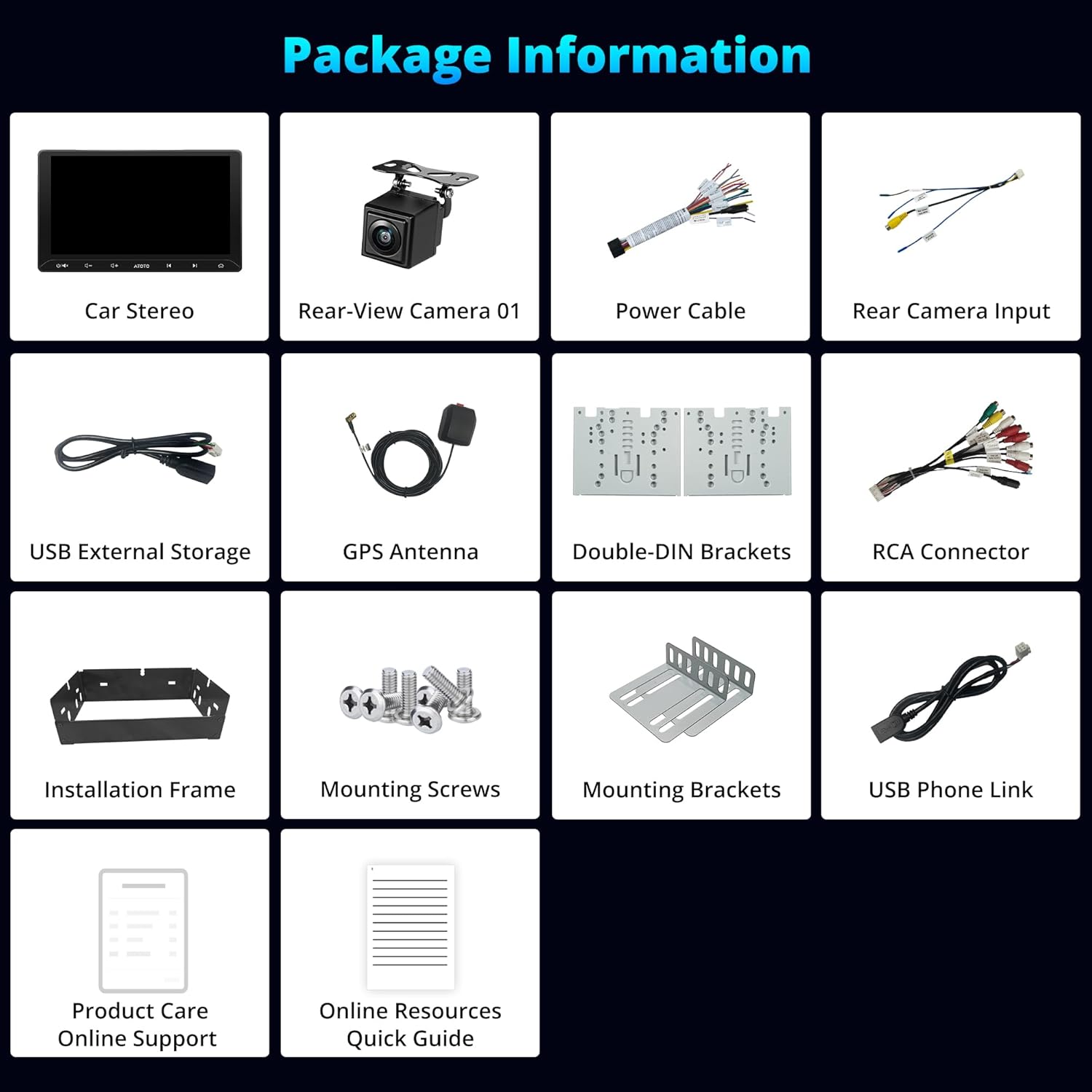 Rear-view Camera: AC-HD01LR(included) rear-view camera for 720P AHD rear-view capabilities like parking guidelines and 140°wide view angle design, helping expande your field of view and reduce blind spots, offering clear vision in low light conditions