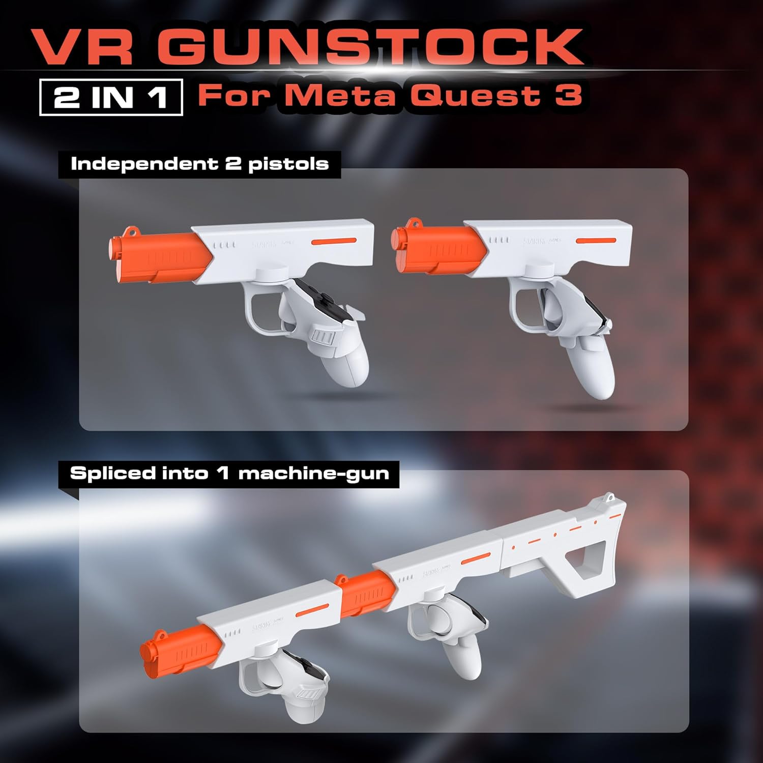 AIJUNCT Gunstock for Quest 3S / Quest 3 Gun Stock Suitable for Oculus Meta Quest 3, Rifle-Like or Dual-Pistol Handle Accessories Connect to Touch Controller, Enhance Real Feeling & VR Gaming