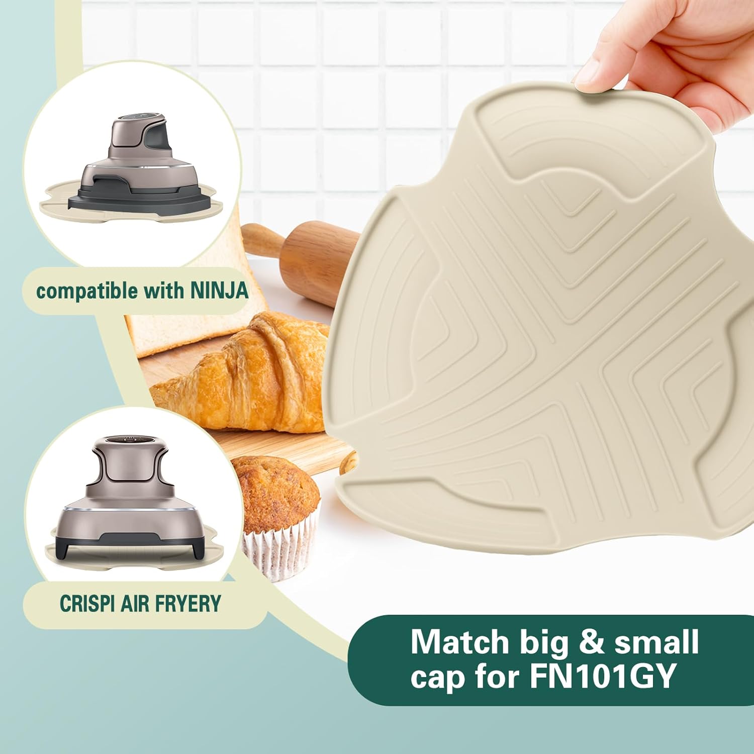 5.Perfect Size & Stylish Colors: Specifically designed for Ninja Crispi air fryer, this 10.5 x 10.5-inch trivet fits two size modes. Choose from Beige, Blue, or Green to seamlessly match your kitchen decor!
