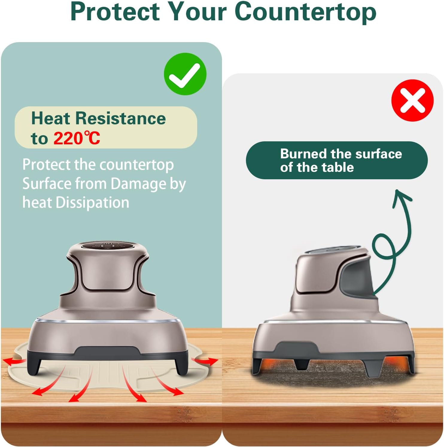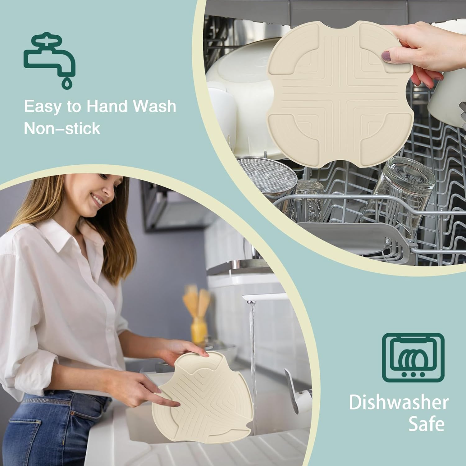 2.Food-Grade & Heat-Resistant Material: Our silicone trivet is made from premium food-grade silicone, this pad is non-toxic,odorless, and withstands temperatures up to 446℉/230°C, ensuring safety and durability even under high heat, ideal for safeguarding conutertops and everyday use.