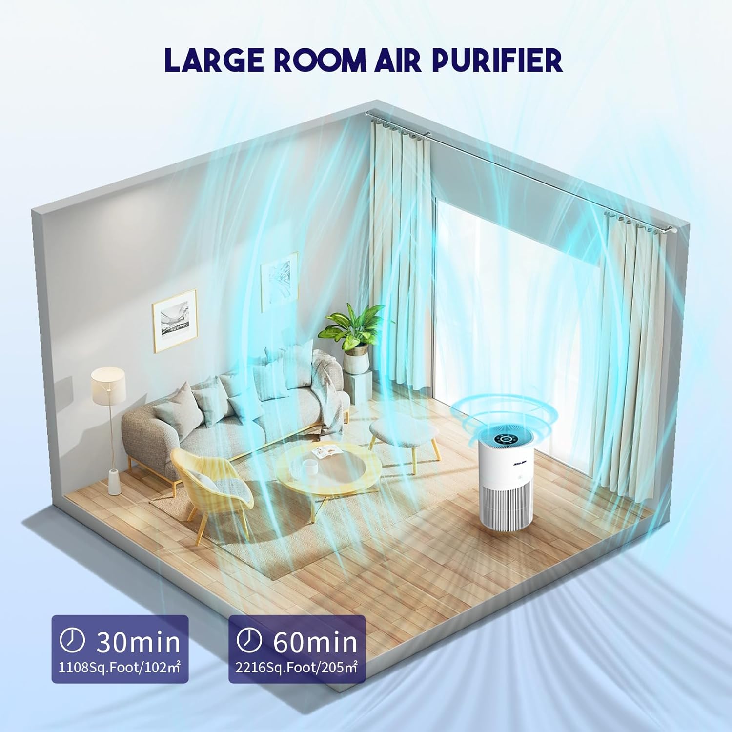 Air Purifiers for Home Large Room, Covers Up to 2216 ft², True HEPA 13 Filter Remove 99.97% is Suitable for Yoga Classroom, Living Room, Bedroom, Meeting room (White)