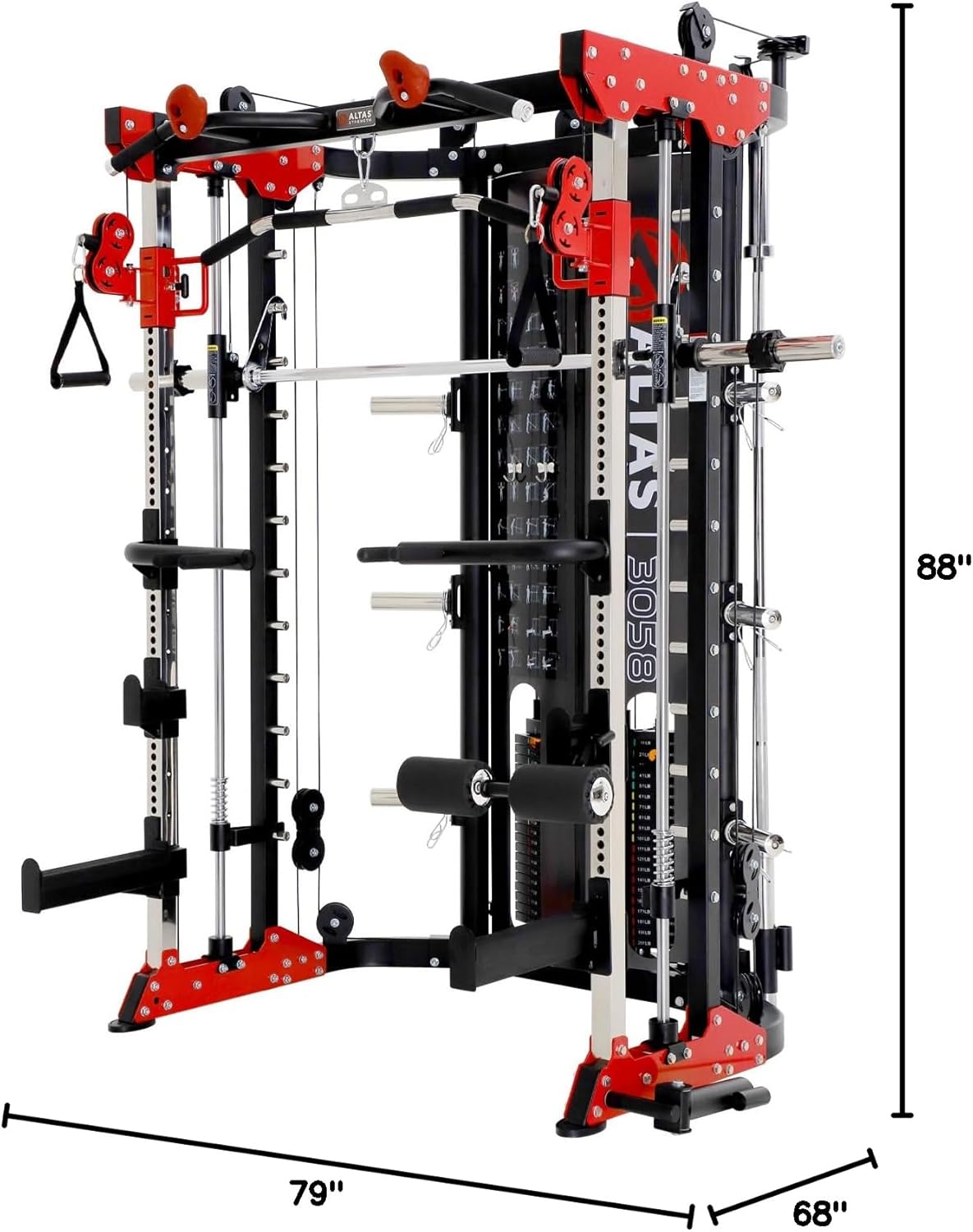 Altas Strength Smith Machine 3058G Home Gym Equipment with 1000 lbs Weight Capacity, 2000 lbs Cables for Versatile Workouts Squats Presses Pulling Lunges Deadlifts Easy Assembly Included Accessories