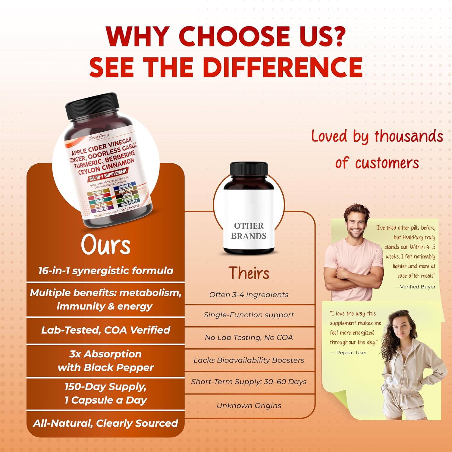 Advanced Formula: Peakpury Supplement contains a of Apple Cider Vinegar per serving, Providing highly concentrated fresh powder in a convenient capsule for optimal support.