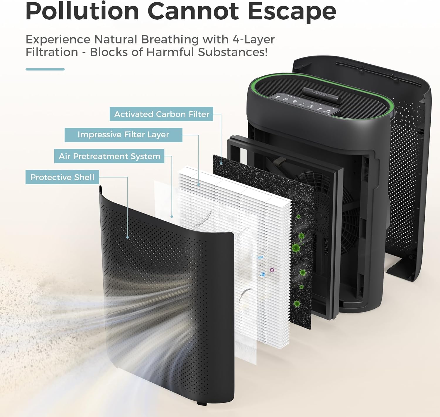 Create Your Healthy Space: Equipped with a complete air purification system, it can filter both solid and gaseous pollutants in the air. Filter dust, pet dander, and pollen for home, Create your own healthy space, improving your air quality.