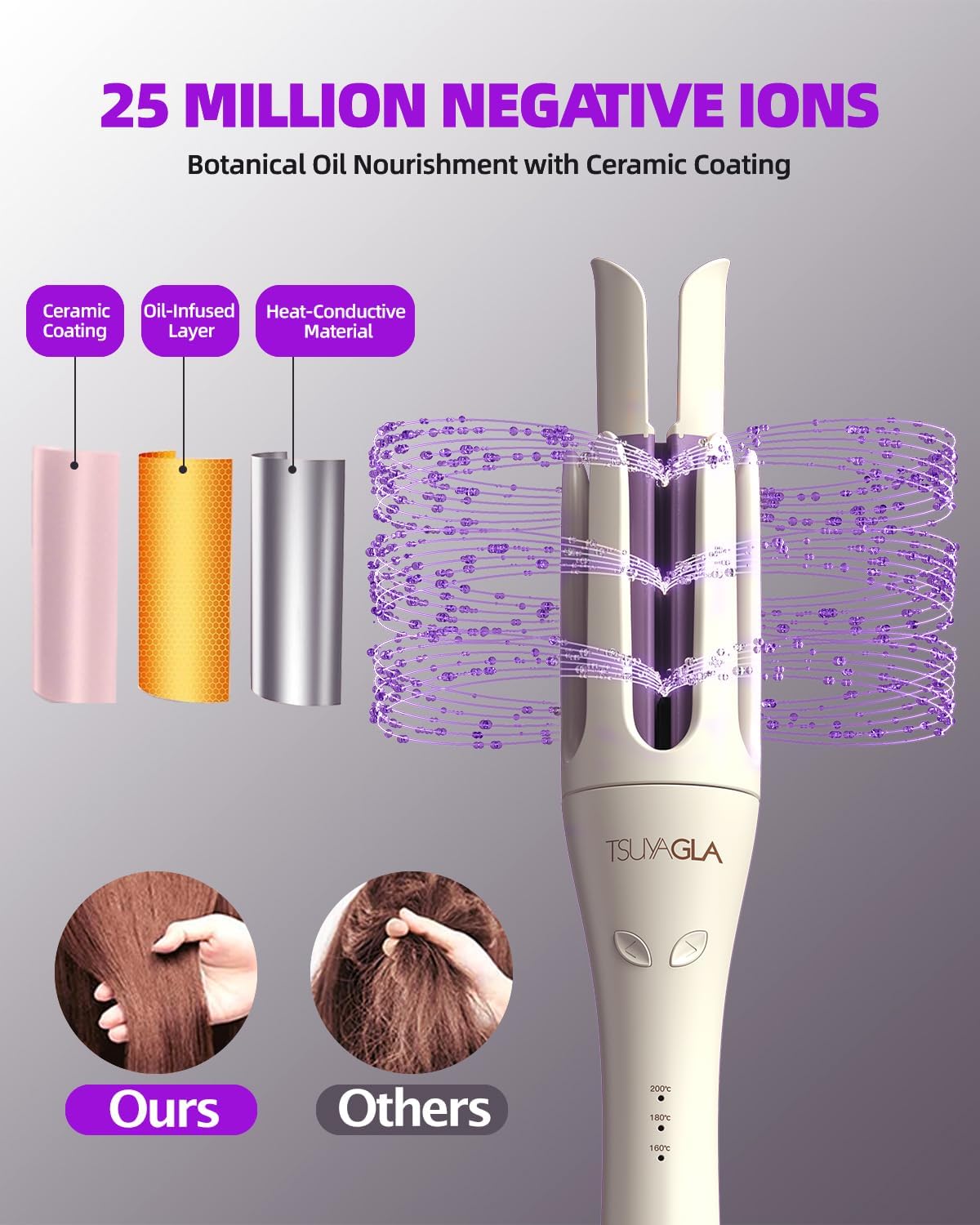 [Quick and Easy Curls Even for Beginners] The TSUYAGLE automatic curling iron features a one-touch auto-rotate function, 2-way rotation, giving you gorgeous curls in just 5-10 minutes, with a hold that lasts up to 72 hours.