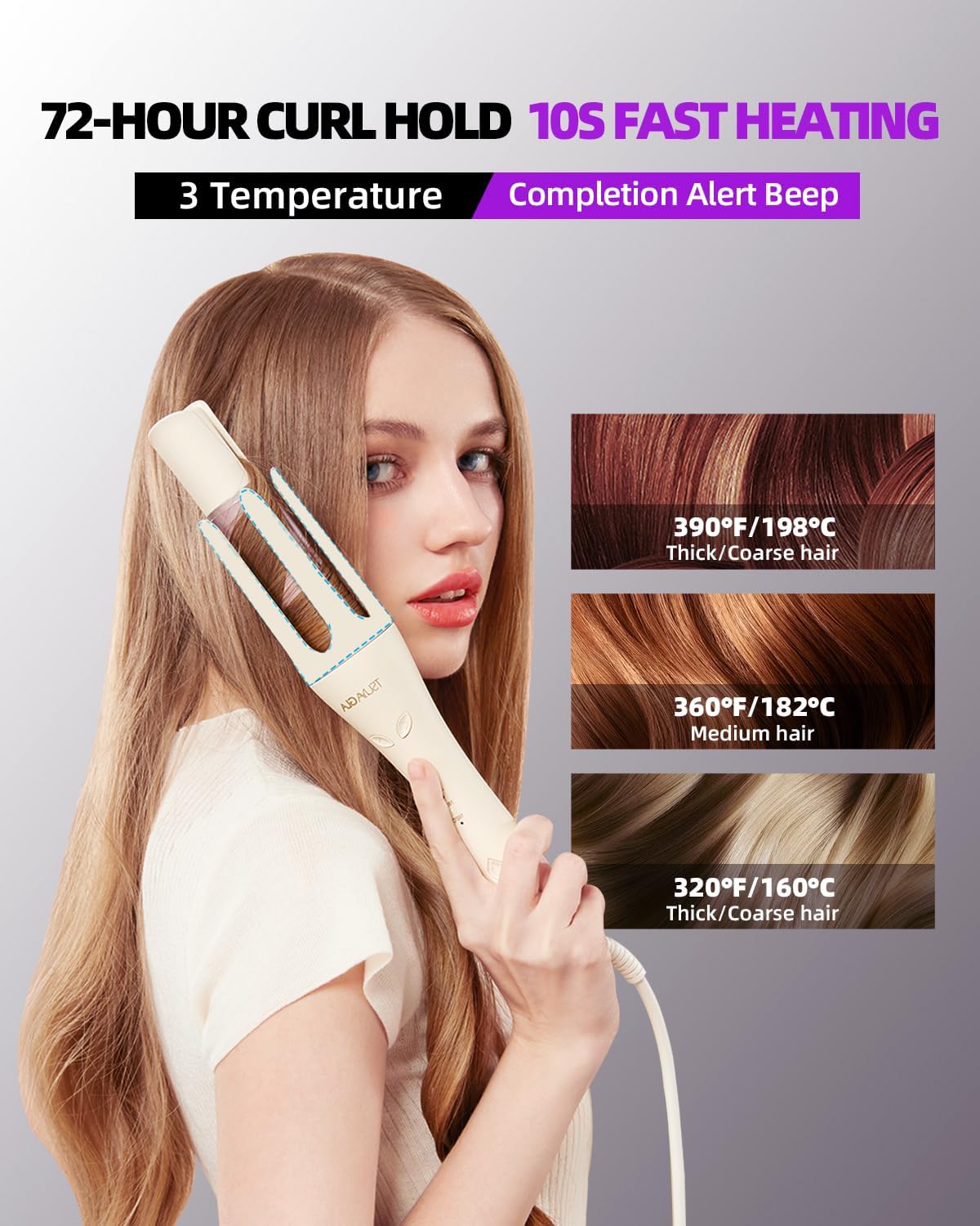 [Perfect for Medium to Long Hair] This curling wand is ideal for hair lengths between 14 to 22 inches (approx. 35–55 cm). The built-in beep alert ensures precise timing for each curl. (Tip: For tighter curls at the ends, hold for an extra 3–5 seconds after the beep.)