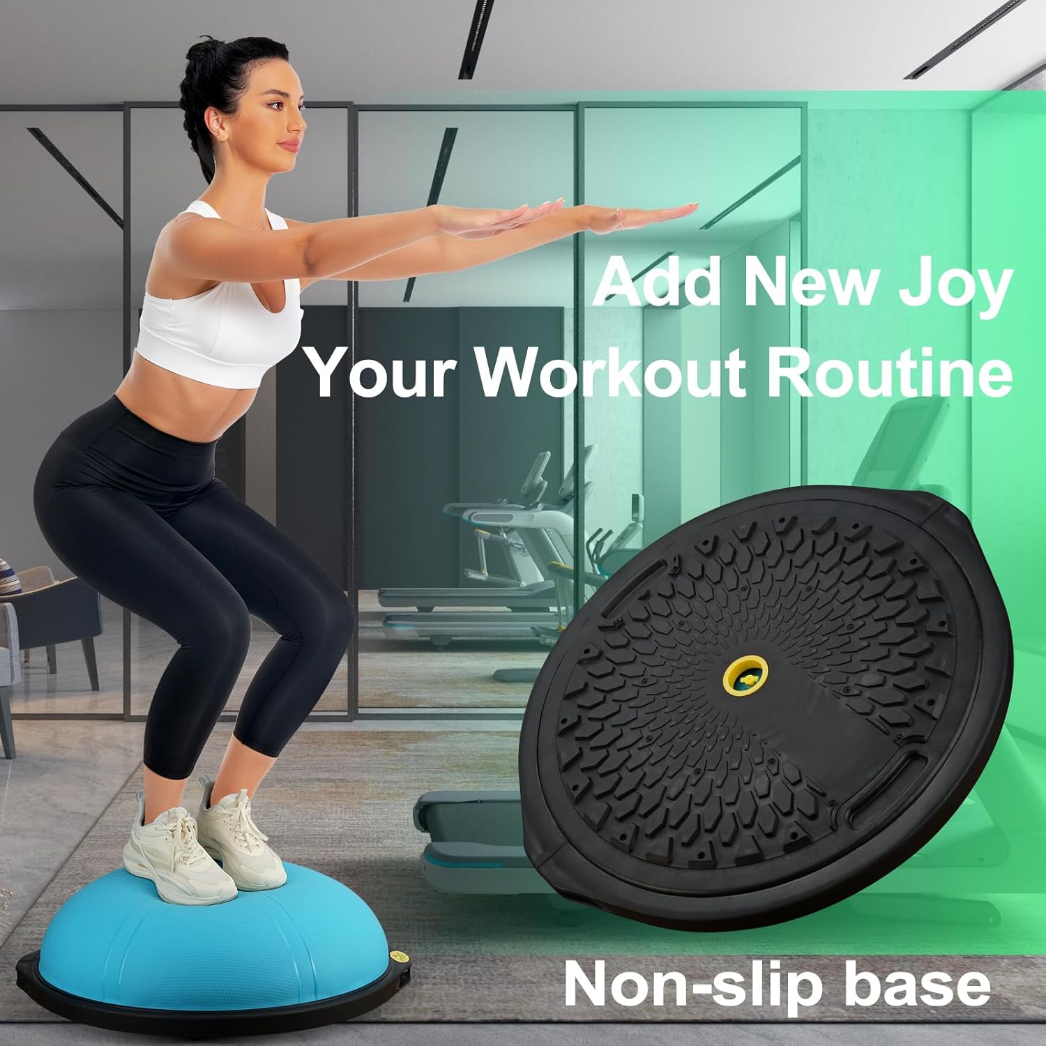 ๐’๐š๐Ÿ๐ž๐ญ๐ฒ ๐š๐ง๐ ๐ƒ๐ฎ๐ซ๐š๐›๐ข๐ฅ๐ข๐ญ๐ฒ: The balance trainer features a textured PVC ball and a flat ABS base, providing exceptional stability and durability. The non-slip design of the ABS base ensures a secure grip and support during your workouts. The hexagonal texture on the PVC ball enhances grip, while the 25-inch wide flat base securely attaches to the floor with TPR material.