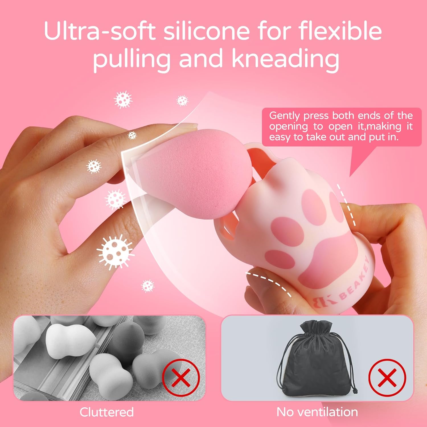 BEAKEY Cat Hug Makeup Sponge Holder, Silicone Beauty Sponge Blender Case with Vent Design for Quick Drying, Compact Travel Essentials Make Up Puff Blender Container – Pink