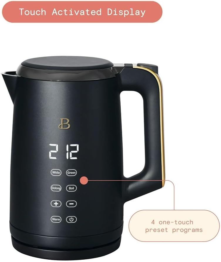 Beautiful 1.7-Liter Electric Kettle 1500 W with One-Touch Activation, Black Sesame by Drew Barrymore