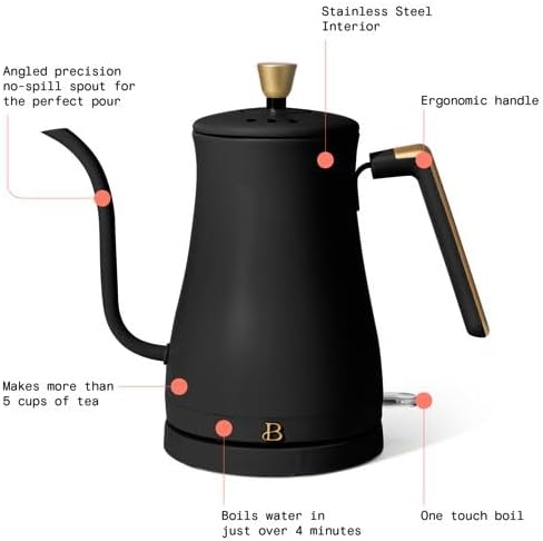 Beautiful~1-Liter Electric Gooseneck Kettle 1200 W, Wildflower by Drew Barrymore, Black (Black Sesame)