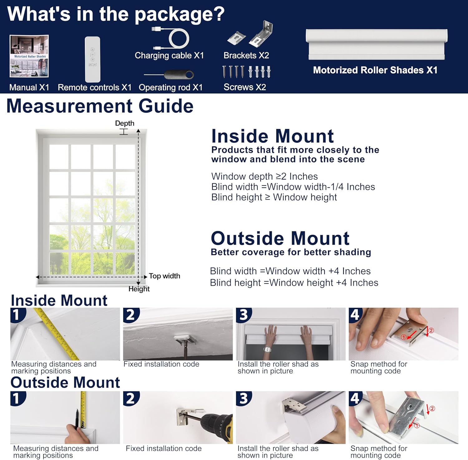 【Smart Control】Automatic roller blinds can be voice controlled, APP controlled, remote controlled.The remote controller is compatible with all three motors, providing the ultimate in convenience and control for your windows. It can control up to 6 blinds with group control feature. The signal transmission distance of the remote control can reach up to 80 meters without obstacles and 20 meters through walls or floors.Let you experience the convenience of automatic roller shades.