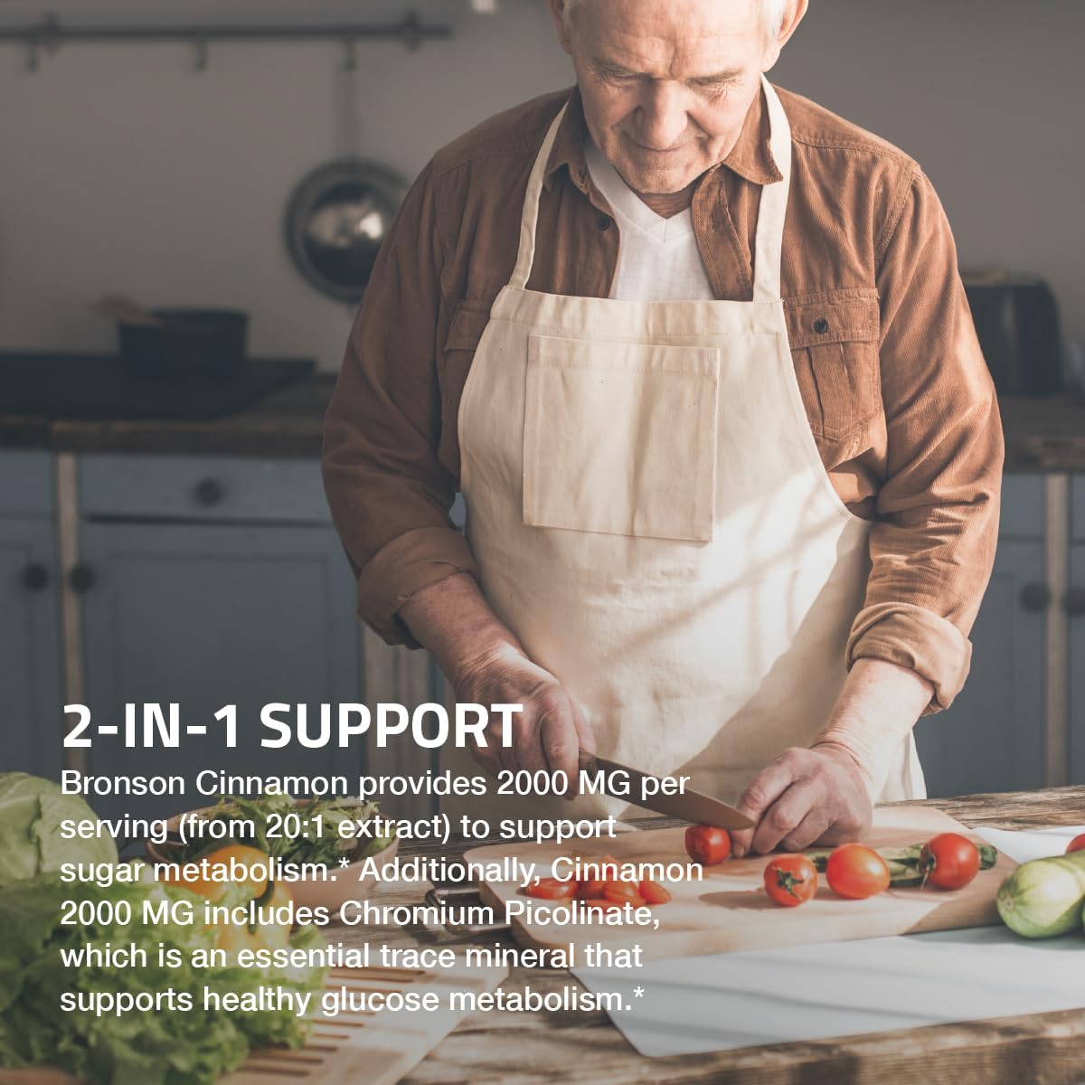 Bronson Cinnamon Plus Chromium Picolinate Supplement, High Potency Chromium, Non-GMO, 60 Vegetarian Capsules