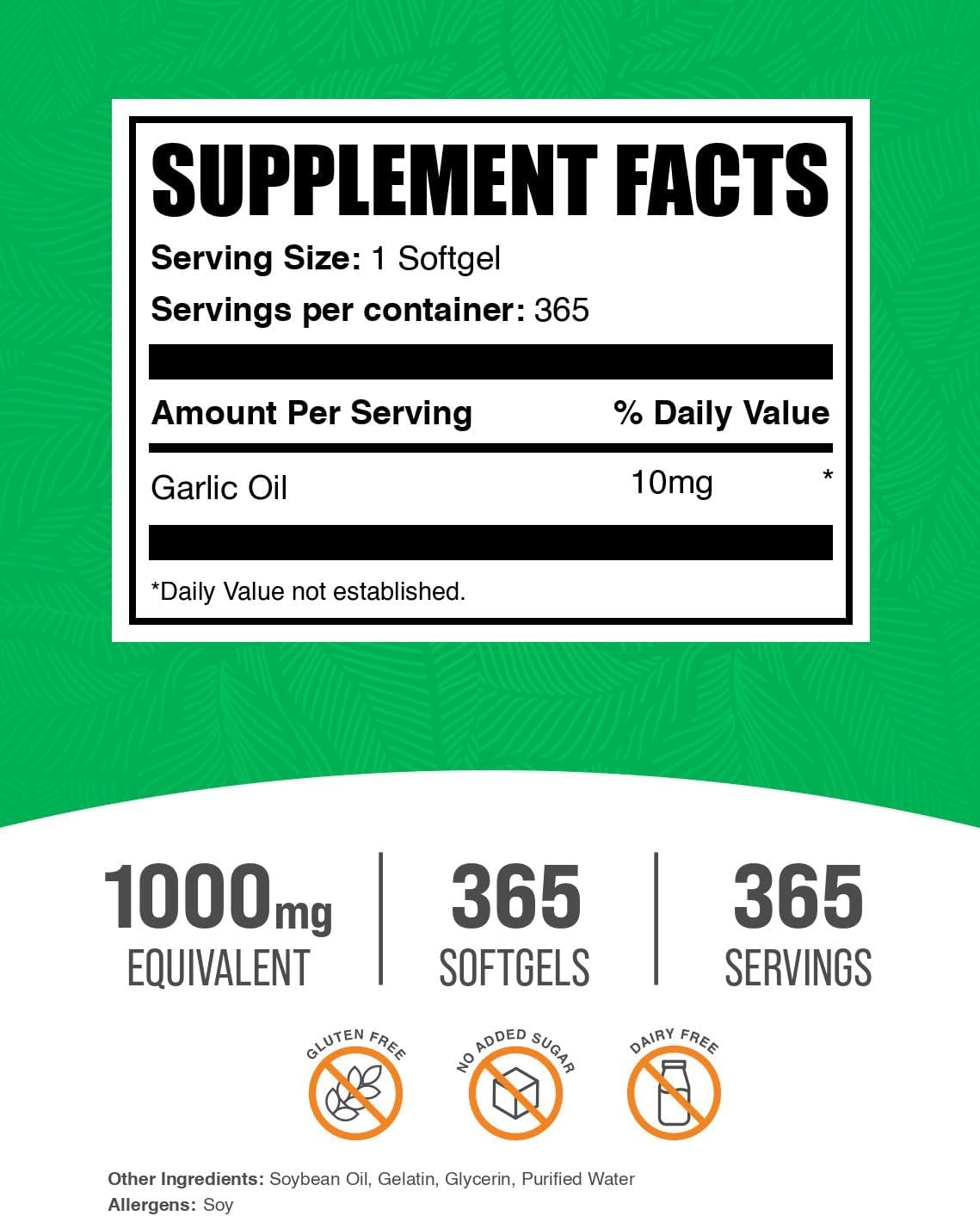 BulkSupplements.com Garlic Oil Softgels – Aged Garlic Supplements, Garlic Extract 1000mg Capsules – Gluten Free, 1 Softgel per Serving, 365 Count (Pack of 1)