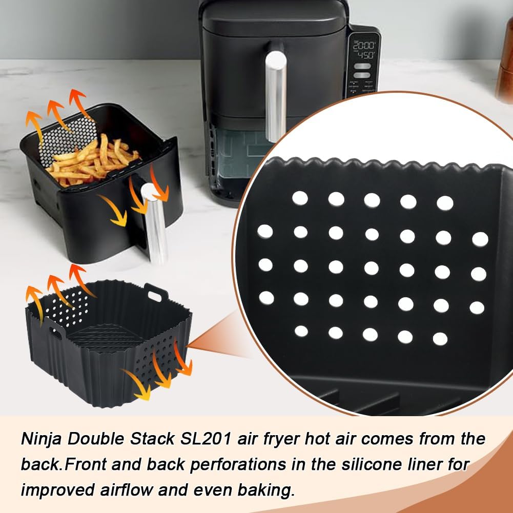 Air Fryer Silicone Liners for Ninja SL201 8Qt DoubleStack 2-Basket 6-in-1 Air Fryer, Reusable Perforated Silicone Air Fryer Liners, Ninja Double Stack Air Fryer Accessories, Space Saving