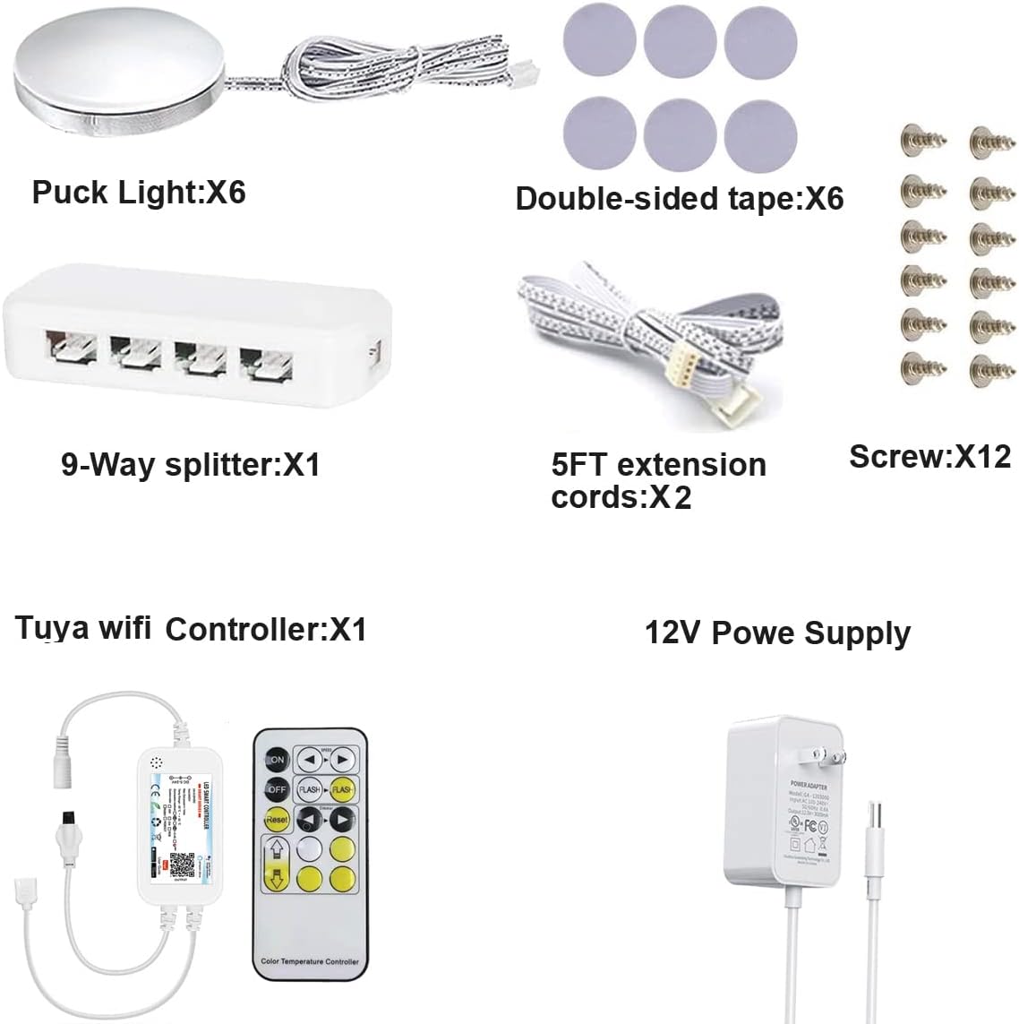 Please note that the 4pin plugs of the controller and the breakout box need to be inserted at ease with the arrows aligned.We are equipped with a junction box, just insert the light into the junction box to turn on your light source. The 12V power supply ensures the safety of your family.Each cabinet light is equipped with a 1.5m cable, which is convenient for you to install to your suitable location.The 6pcs set comes with two 2M extension cables separately.