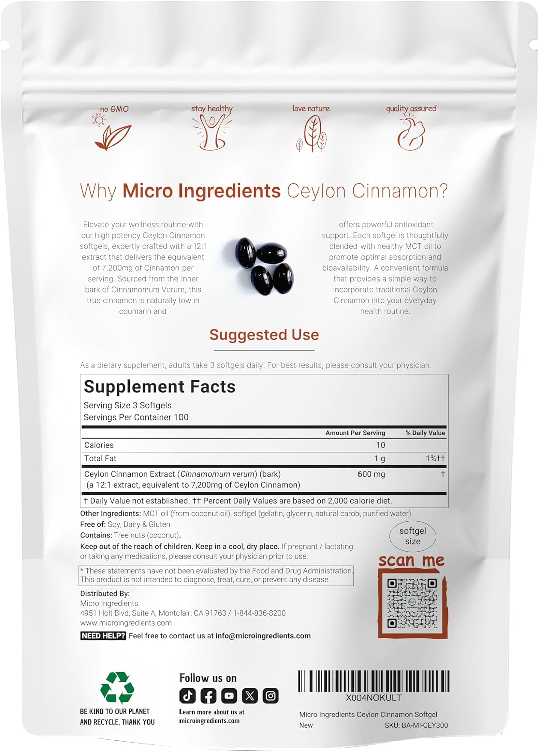 Micro Ingredients offers highly bioavailable Ceylon Cinnamon softgels infused with healthy MCT oil from coconut, designed to enhance absorption and overall antioxidant benefits.