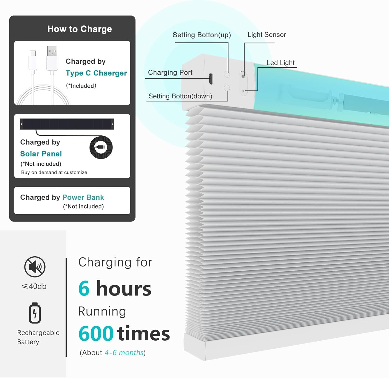 Convenience: This Smart Cellular Shades can directly work with 5 Versions’ Alexa. (Echo Plus 2nd Gen, Echo Show 2nd Gen, Echo Studio, Echo Show 10, Echo 4th Gen), App and voice control, can be controlled from anywhere in the world through an internet connection, using smartphones or other networked devices such as a smart speakers.