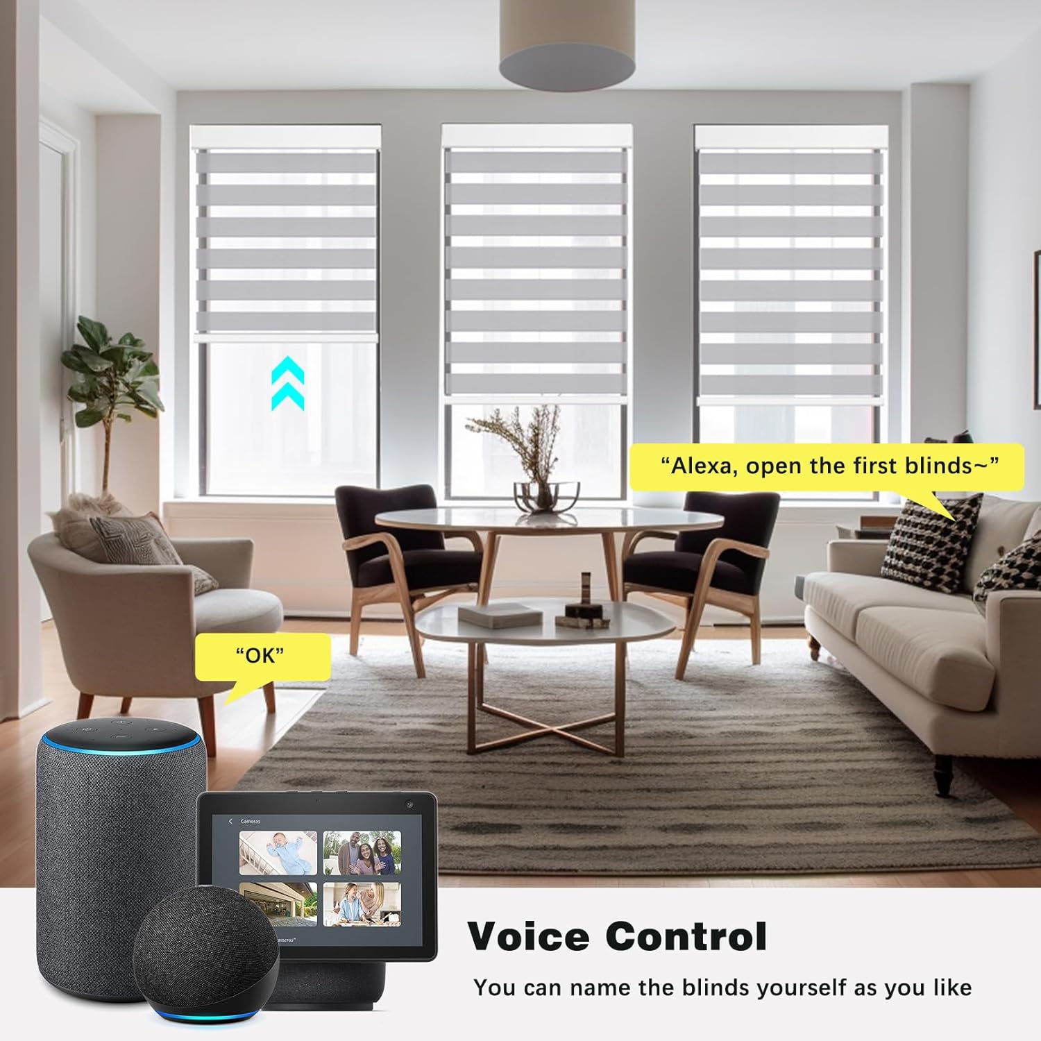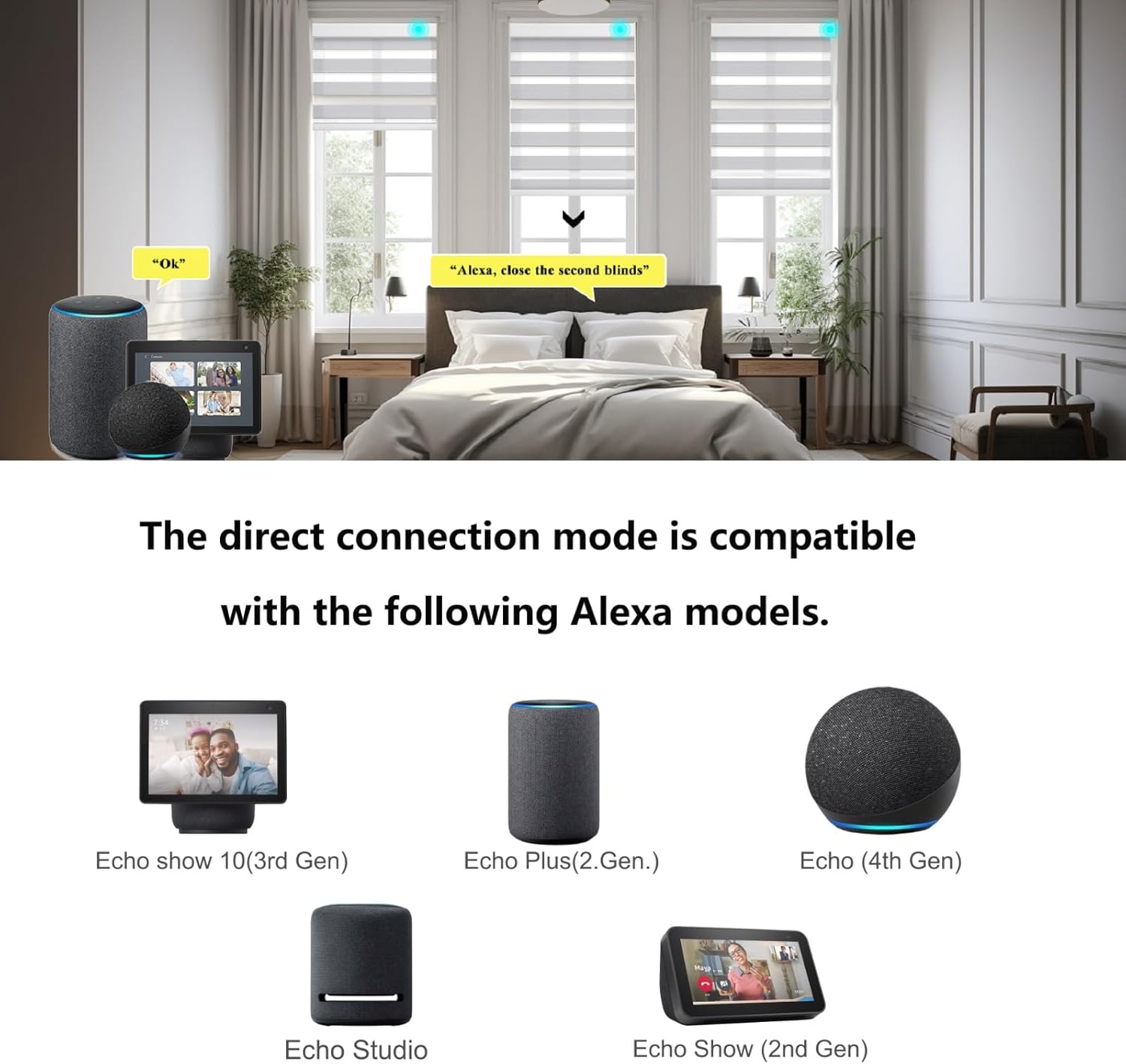 Convenience: Custom motorized blinds can directly work with 5 Versions’ Alexa. (Echo Plus 2nd Gen, Echo Show 2nd Gen, Echo Studio, Echo Show 10, Echo 4th Gen), App and voice control with iPhone, iPad, Apple Watch and HomePod mini, can be controlled from anywhere in the world through an internet connection, using smartphones or other networked devices such as a smart speakers.