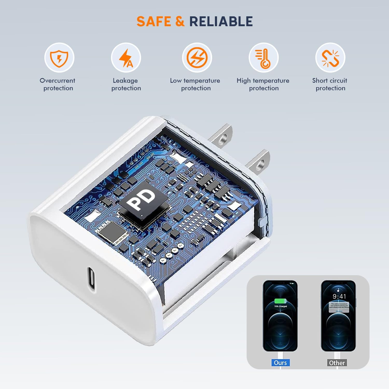 ⚡ 【iPhone 16/15 Charger Fast Charging】Equipped with Fast iPhone Charging USB Type C power delivery Woven Charge Cable Cord wall plug, PD 3.0 Quick-Charge USB C port provides Max 20W output power, charge your device up to 3X faster than original 5W charger, charging your iPhone up to 50% in just 35 minutes, saving over 1.5hrs for you. Helps You Work Efficiently.