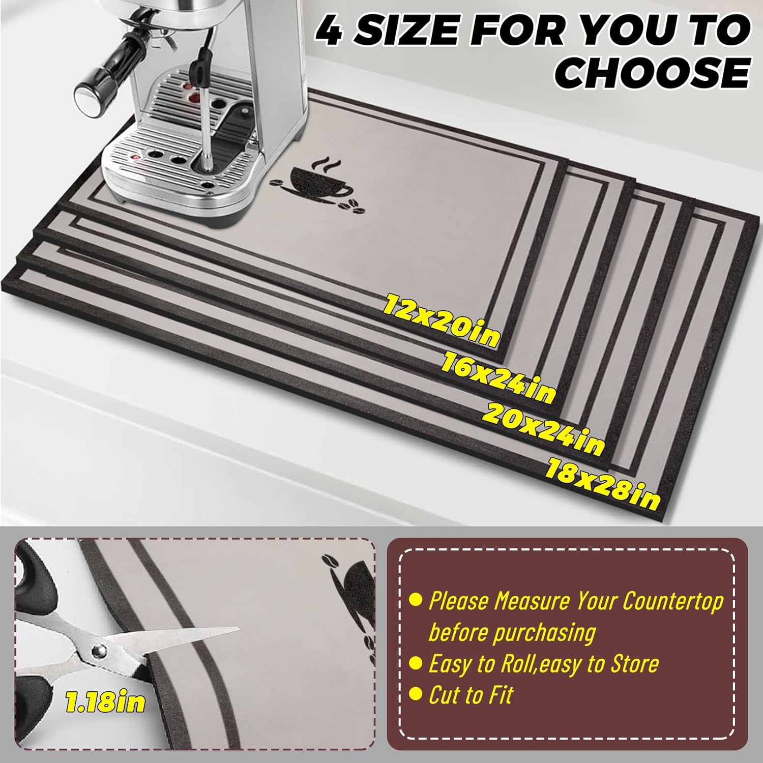 Coffee Mat Super Absorbent Coffee Bar Mat Hide Stain Coffee Maker Mat for Countertops Coffee Bar Accessories Fit Under Coffee Machine Coffee Pot Dish Drying Mat for Kitchen Counter