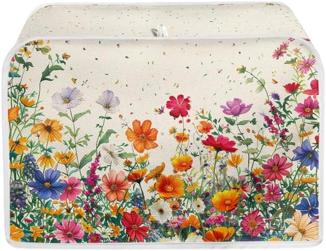 Colorful Flower Bushes Toaster Cover 2|4 Slice, Cartoon Daisy Dahlia Kitchen Small Appliance Cover Watercolor Pastoral Style Dust and Fingerprint Protection, Machine Washable -L