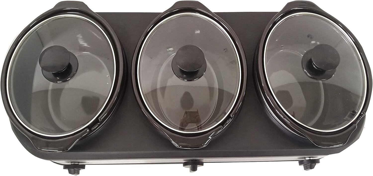 COOKING SETTING: Specially designed for convenient serving. Triple slow-cooker, warmer, and server for entertaining family and friends. Each crock has its own heating element with three settings High, Warm and Low to keep your favourite dishes at their optimal temperature.