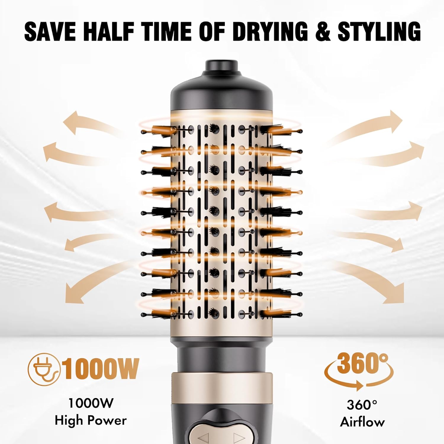 4-in-1 Hair Dryer Brush: Hairdryer, straightener, curling iron, and comb all in one for styling and drying hair in one step.The design allows for smooth, easy styling with minimal effort.