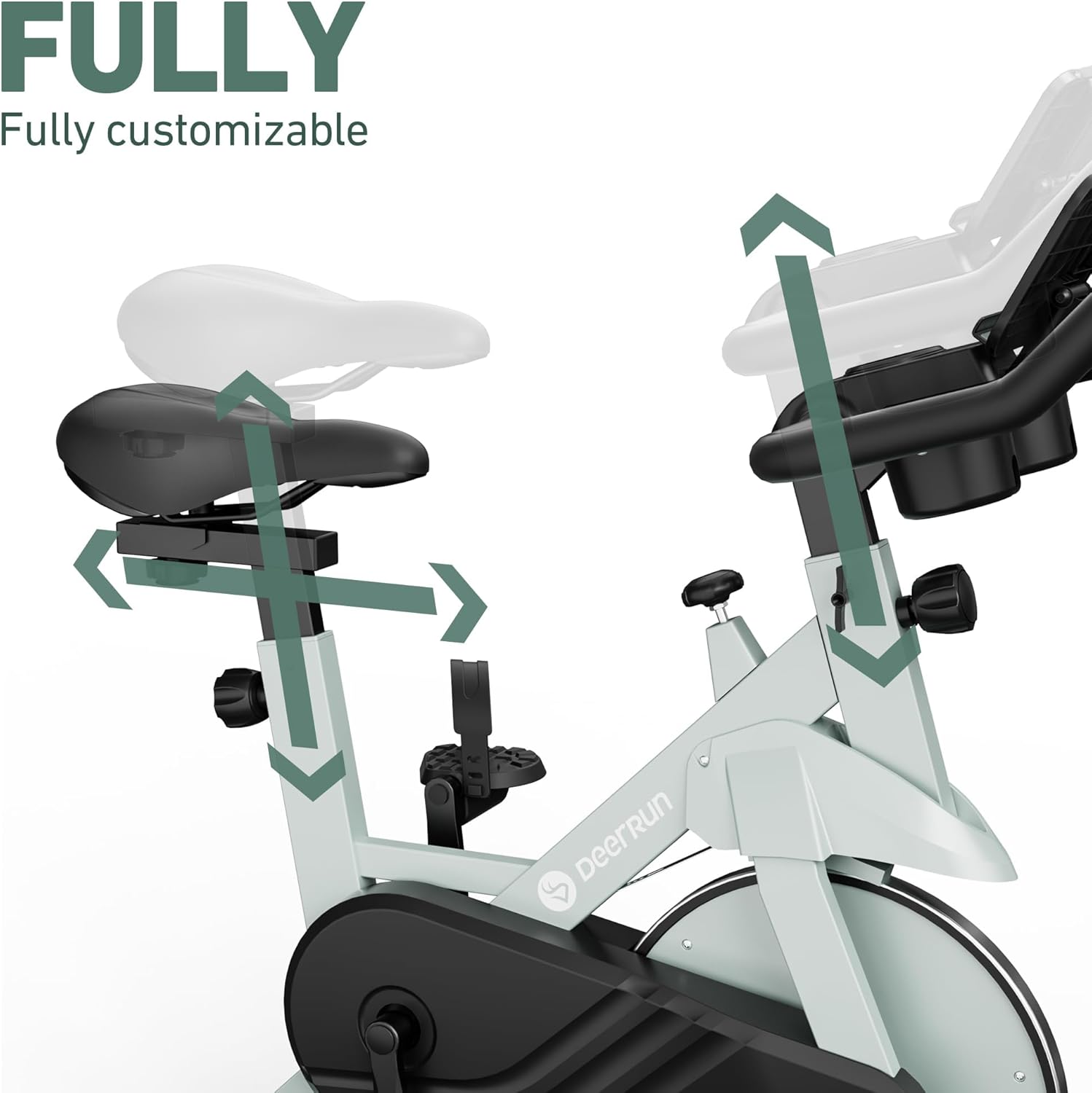 【Quiet & Adjustable Magnetic Resistance Bike 】 This indoor bike is equipped with adjustable handlebars and seat. The seat can be adjusted in 4 directions, allowing easy movement both horizontally and vertically, with a height range of 29.92-36.22 in. The handlebars are adjustable in 2 directions, with a height range of 37.01-40.94 in. It meets the fitness needs of different users, making it a fitness bike suitable for the whole family