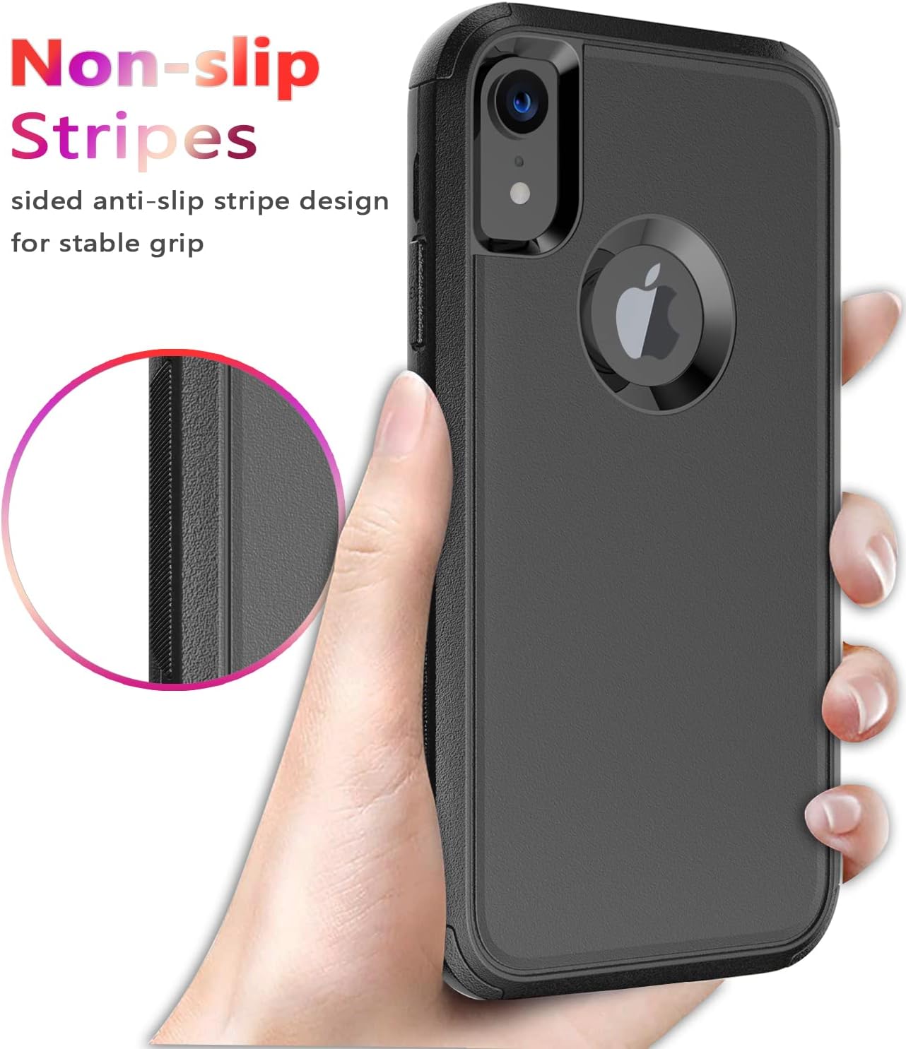 Diverbox Designed for iPhone Xr case with Screen Protector Heavy Duty Shockproof Shock-Resistant Cases for Apple iPhone Xr Phone (Black+Screen Protector)