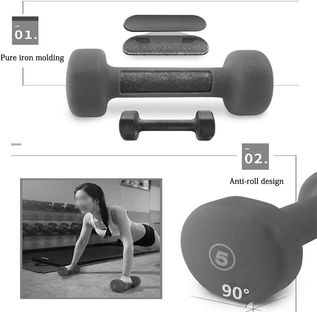 💪【Fitness Dumbbells】: The dumbbell adopts plastic dipping process, which has a longer service life and can effectively prevent floor damage; the non-slip handle is ergonomically designed, and the surface is matte and more comfortable; the 90° anti-roll design prevents stability and is safer to use
